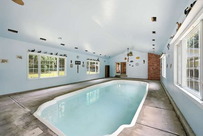 Beautiful Multi-generational living space or share with friends, this home has a beautiful in-law apartment in addition to the main home's 4 bedrooms all set on over 20 acres! Beautiful, light and open living space throughout the main floor featuring gleaming hardwood floors and a gorgeous fireplace welcome you home. Enjoy the indoor pool year round, as well as the many outdoor seating areas, 2 decks and a wonderful covered porch are fabulous spots to enjoy the wildlife that abounds here. The 36'x60' commercial quality garage/barn is the perfect spot to keep all of your toys or equipment safe and sound. Have horses or other livestock? I can see that building being easily converted to a fabulous horse barn with direct access to an already cleared field for turnout or riding arena. This home is situated just minutes from Peaked Mountain and all the wonderful trails there. Easy commute to all major routes, close to shopping and restaurants but feels very private and tucked away.