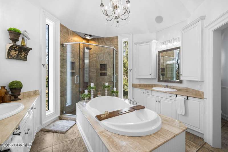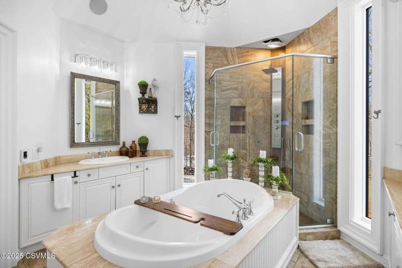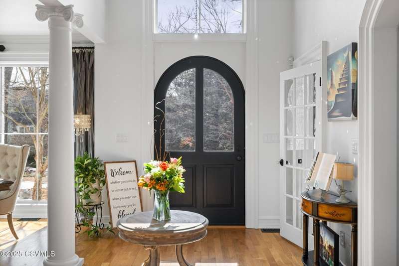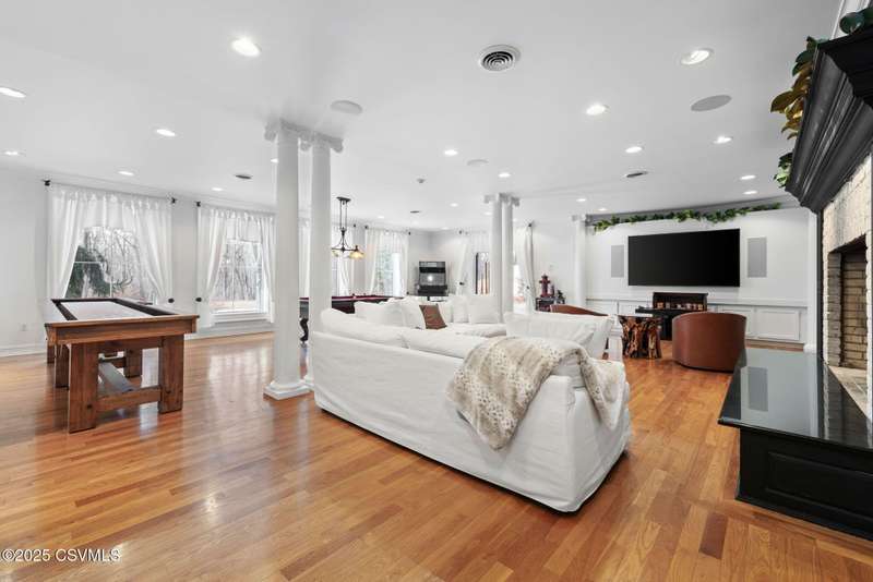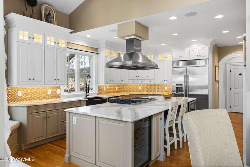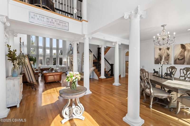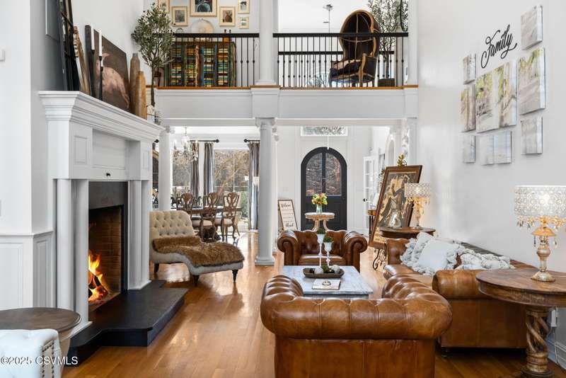 Welcome to 105 Countryside Lane - a stunning custom brick home, an entertainer's dream and a sanctuary of luxury. Offering over 5,000 finished square feet across three beautifully designed levels, this 5 bedroom, 6+ bathroom residence features high end finishes, an open and airy floor plan, and an abundance of natural light.Step inside to soaring vaulted ceilings, gleaming hardwood floors throughout, and three fireplaces, including one in the polished home office. The chef's kitchen is a showstopper, designed for both everyday living and entertaining. A first floor primary suite is both private and lavish, with spa-like amenities. The finished walk-out lower level features a spectacular wine cellar and full tasting kitchen, a spacious 5th bedroom with a 3/4 bath, and the potential for