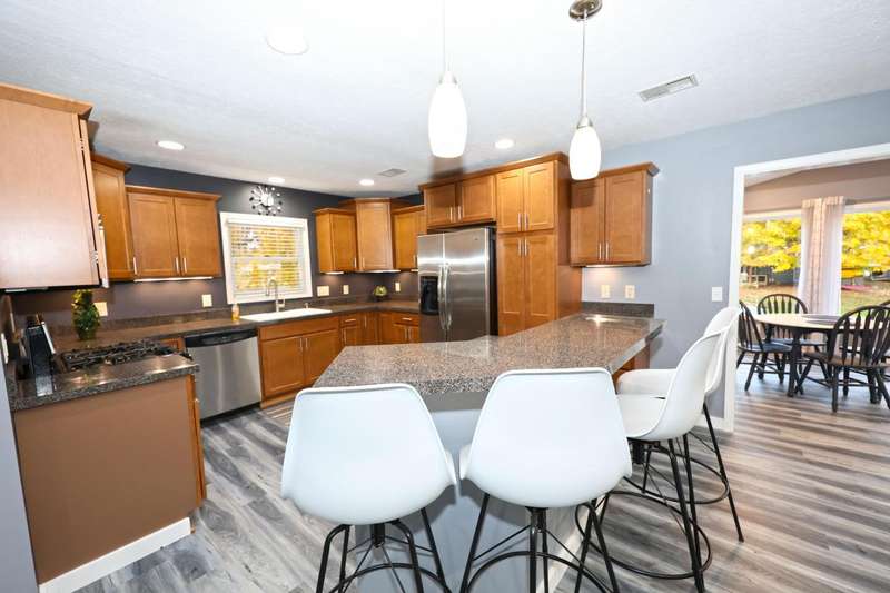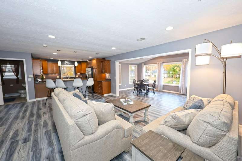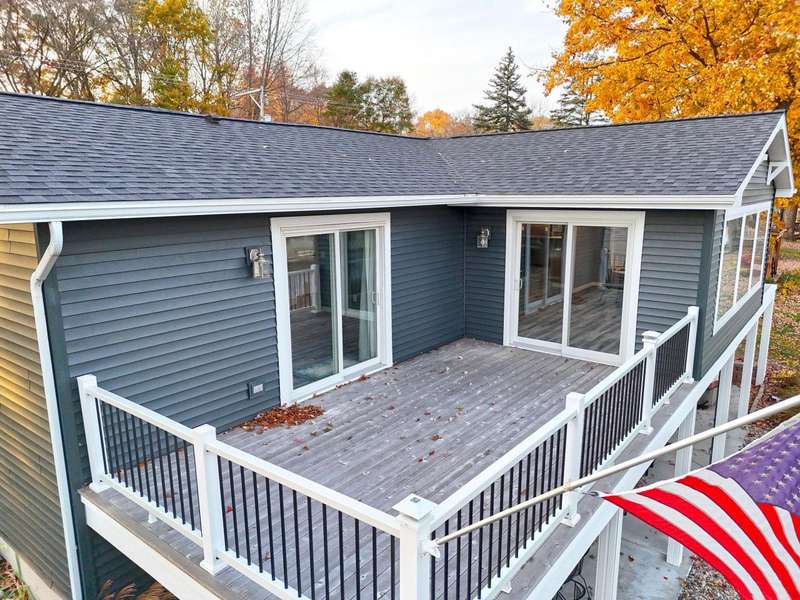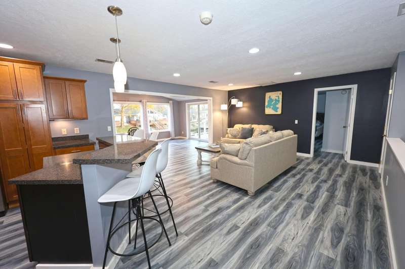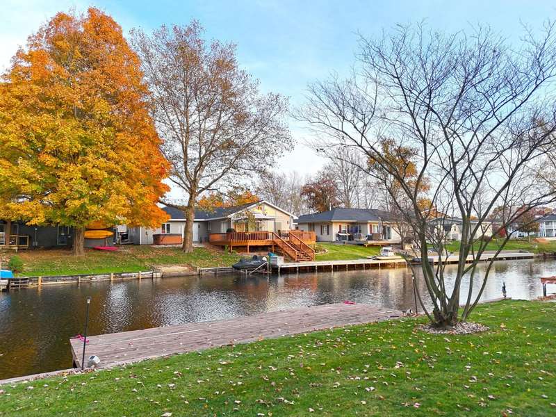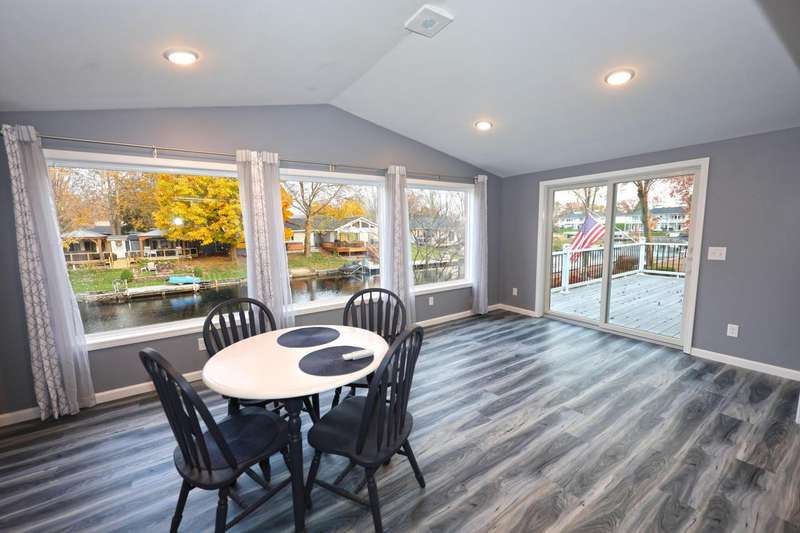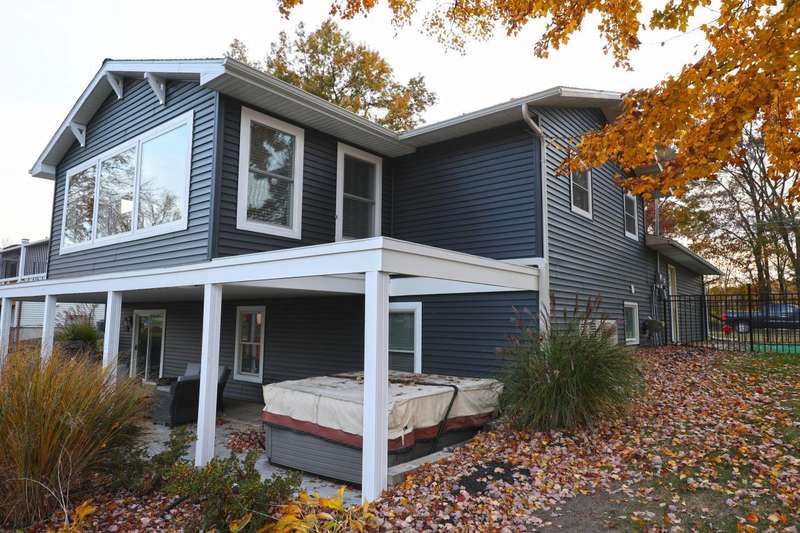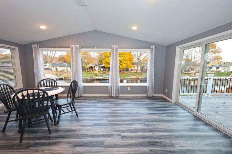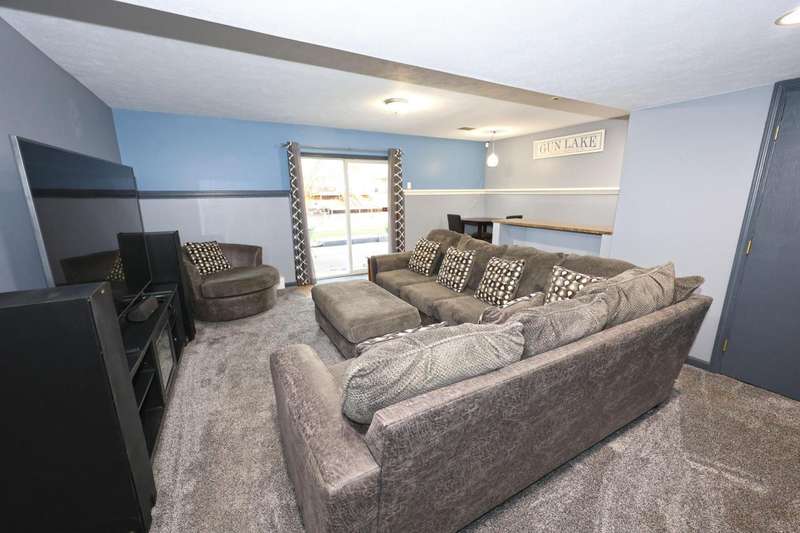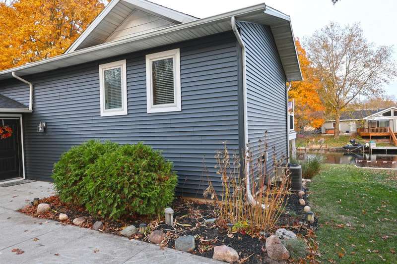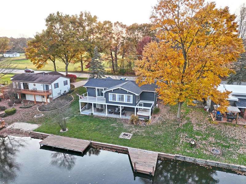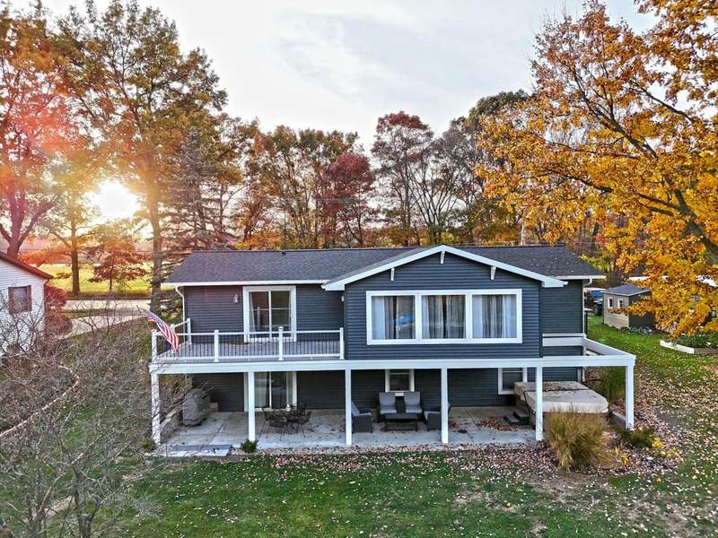 Wonderful lake home, on one of the many channels, on the 2,600 plus acre Gun Lake. The home is completely renovated with an open floor plan, vaulted ceiling, breakfast bar kitchen island, upper deck and lower patio. Great windows lakeside. Primary en suite with a spacious bath, deck access and walk in closet. The walkout level is a fantastic entertaining space with a large family area, wet bar, full bath and covered patio to the lake. Nicely landscaped, with no steps to the water. Fire pit and seawall with 80 of frontage. Attached 2-car garage. Awesome space in and out. And, on a lake that is majestic with undeveloped areas, tranquil with wildlife. Exceptional fishing. 17.8 miles of shoreline. Islands, eight inlets. Parks. Marinas. Restaurants.