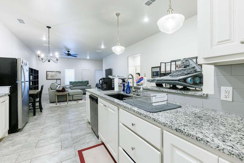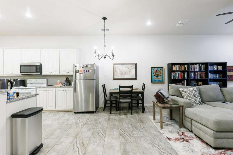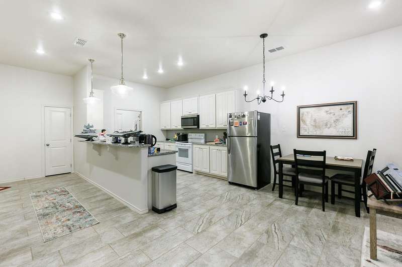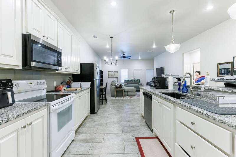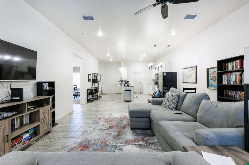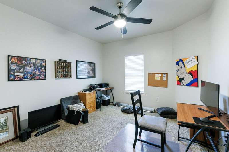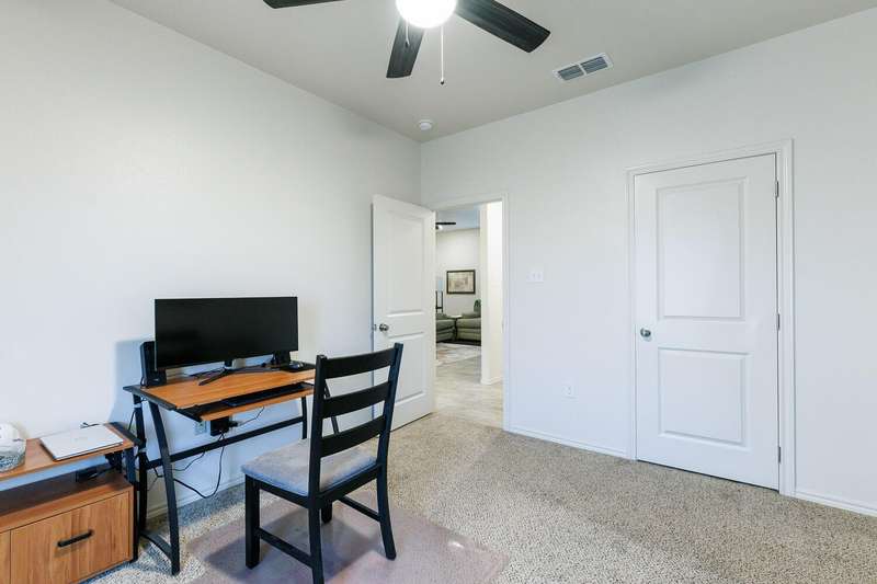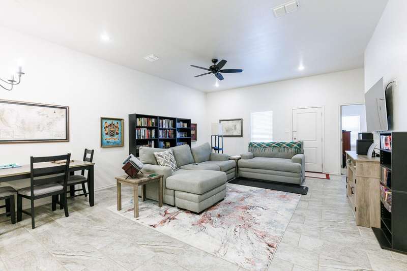 Very spacious Townhouse with 2 bedroom, 2 baths and a 2 car garage in Lincoln 16 subdivision, built in 2020 by Jordan Wheatley. Open concept. Kitchen has abundance of cabinet space with granite counter-tops & breakfast bar & pantry. The free standing range/oven is about 3 years old. Primary suite is isolated with two lavatory's, walk-in closet and a wonderful shower. The second bedroom is on the front of the house, the hall bath features a tub/shower with extra storage. The home has designer lighting & delta faucets. All the floors are tile except the bedrooms have carpet. Brick with metal fascia, xeriscape front yard with artificial turf. The small backyard is fenced, with a cement patio and no grass to upkeep. The townhome is perfect for anyone wanting to simplify their living.