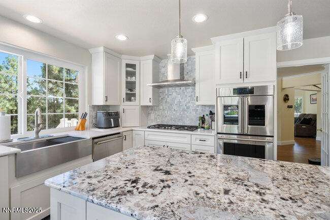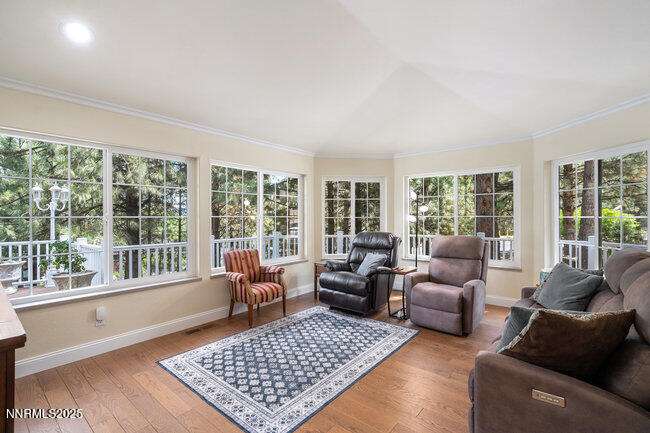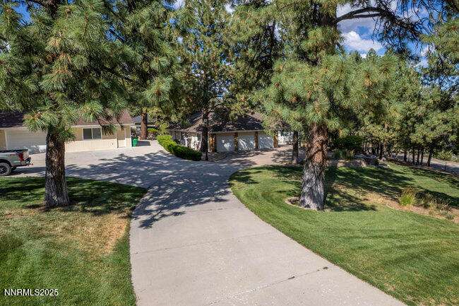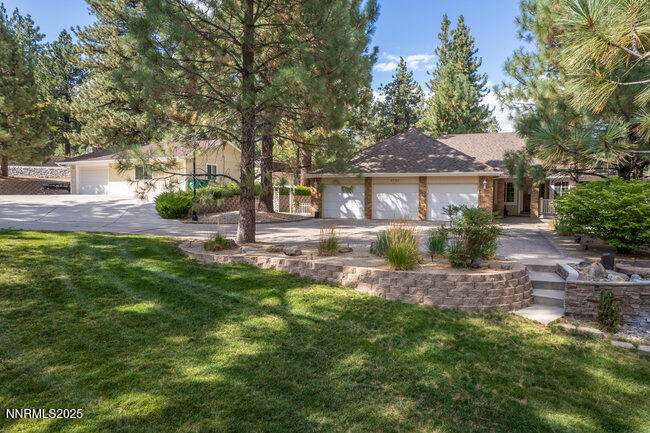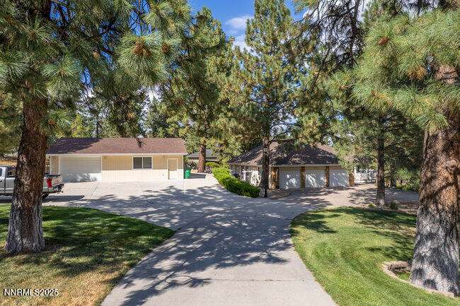 Nestled in the scenic Lakeview Woods, this meticulously remodeled 3-Bedroom + office home offers elegance and functionality. The brand new kitchen is a chef's delight, featuring GE Monogram appliances, chic cabinets, and beautiful quartz and granite counters. Inside you'll find real oak hardwood floors, ceramic tile, plush new carpeting, new lighting, updated baths and more. The property also include a 1,200 sqft. detached garage with a private 1-bed, 1-bath apartment, perfect for guests or rental income. Enjoy a huge driveway for extra parking, a storage shed, and abundant wildlife, all just 25 minutes from Reno, 5 from Carson City, and 40 from Lake Tahoe.