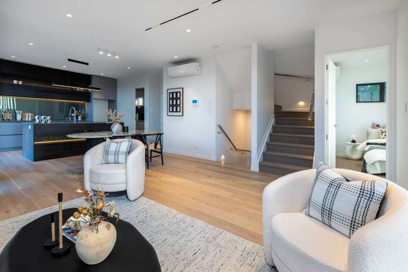 Step Into a Life of Coastal Luxury. Imagine waking up to the soft glow of morning sun over the Hauraki Gulf, sipping coffee on your elevated deck as the kids get ready for school — Rangitoto College, Westlake Girls’ and Westlake Boys’, all just minutes away. This is more than a home. It’s the lifestyle your family deserves. From the moment you walk through the door, you’ll feel it: space, light, and effortless elegance. With four generous bedrooms, three spa-inspired bathrooms, and a double internal-access garage, this a standalone home offers room to grow and the quality to enjoy every step of the way. Exterior Excellence: The architecture celebrates a modern coastal aesthetic, with rich JSC Lunawood vertical timber cladding paired with Ultraclad Sandstone aluminium — a timeless mix of texture and durability. Elevated decks and full-height glazing capture the ever-changing hues of the Hauraki Gulf, reinforcing this home's seamless connection to its coastal setting. Interior Sophistication: • Grand entrances welcome you with Prime Walls Southern Alps feature panels and GIB Shadowline detailing, setting a refined tone. • The chef’s kitchen is a stunning centrepiece with Bosch Series appliances, an induction and gas cooktop, Trendstone Cala Royale and Lava Dark Grey benchtops, and Fiordland Elm + Agate cabinetry. A metallic glass splashback and pendant lighting complete this entertainer’s dream. • Open-plan living spaces feature wide-plank engineered timber flooring, an airy coastal colour palette in Mt Aspiring Half by Dulux, and ambient strip lighting to suit every mood. • Spa-inspired bathrooms include cloud stone mosaic feature walls, light grey floor tiles, engineered stone vanities, and Methven MK2 brushed nickel fittings—combining timeless beauty with modern comfort. • Generous bedrooms are dressed in Bremworth Lattice wool carpet, while built-in Ash Woodline wardrobes with soft-close drawers offer elegant storage solutions. Do not wait for the sold sign, contact us now for further information. NB: Photos show 12D Kowhai Rd, followed by 12A Kowahi Rd.