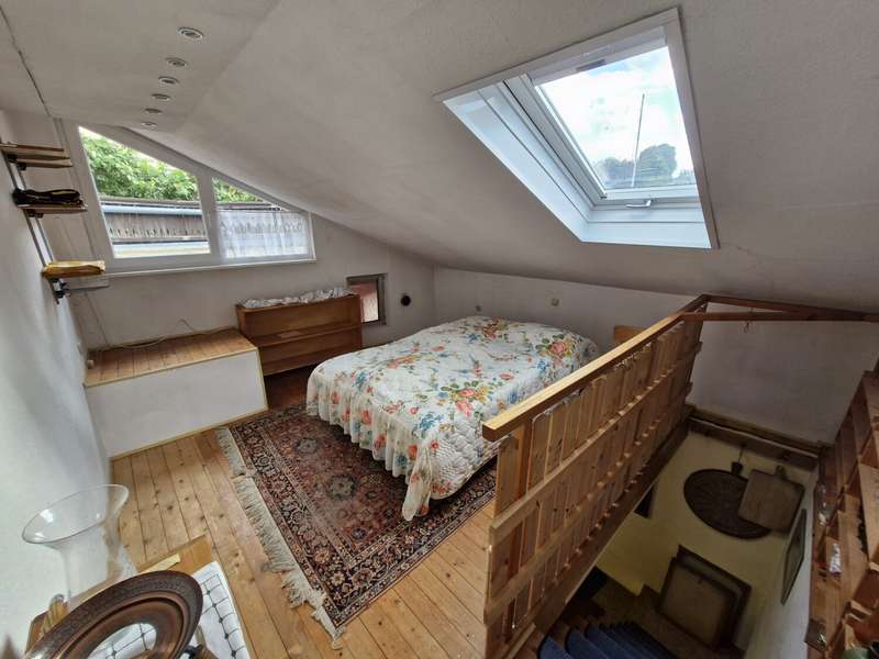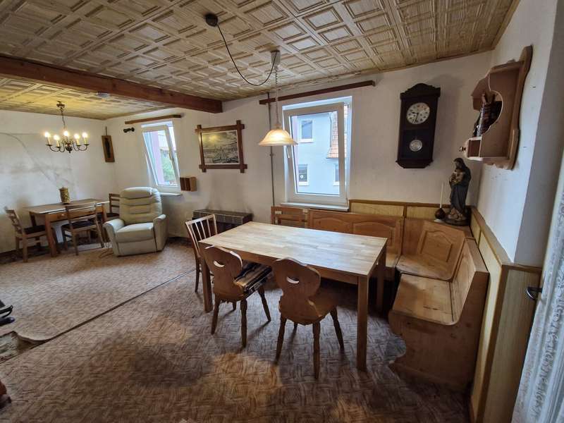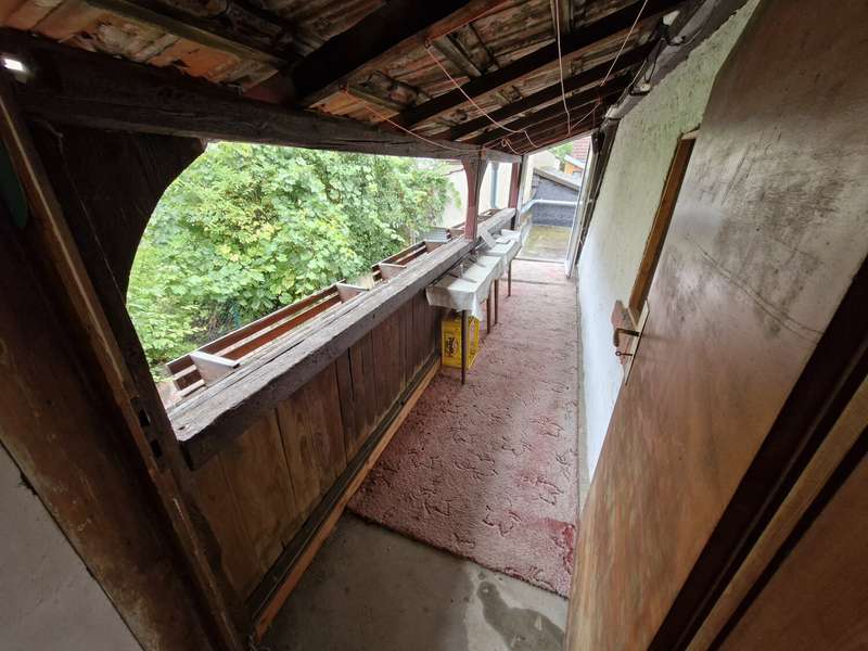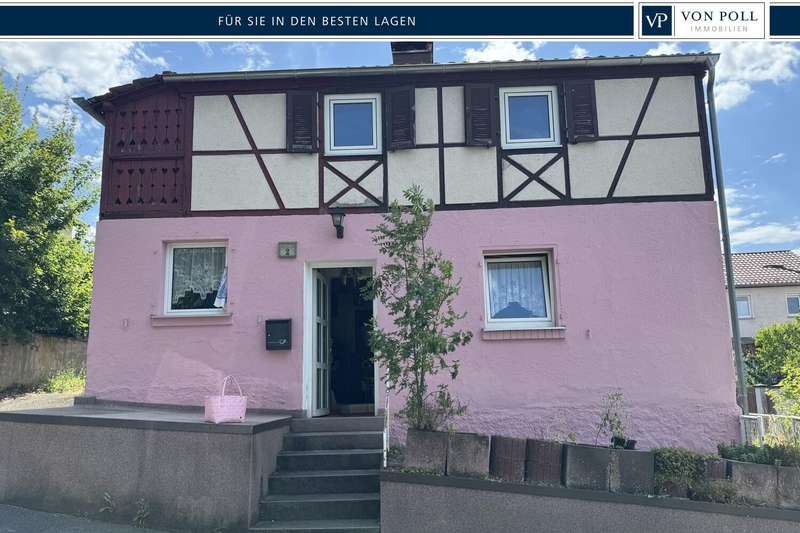 DEAR INTERESTED PERSONS An "OPEN HOUSE event" will be held on Sunday, September 28, 2025 at 2 p.m. to mark the start of the sale of this charming old property in need of renovation with a panoramic view over Höchberg Registration is required. - No admission without registration. Thank you for your understanding. EXPOSETEXT This detached house with garage, extension, partial cellar and need for renovation is situated on a plot of 227 m² in a quiet residential area with beautiful views, above the old town of Höchberg. The house, built in 1925 and renovated in 1987, offers approx. 105 m² of living space on two levels, plus additional "usable space" of approx. 60 m² both outside and inside the house. There are 4.5 rooms, including 3.5 bedrooms, 2 terraces and a loggia-balcony. One terrace is located in the inner courtyard, the second on the upper floor. The covered balcony is also located there. Heating is provided by individual gas stoves from 1985/1987, the kitchen is equipped with a wood-burning stove. The hot water is heated by electricity. A barn-like extension to the house, typical for this period of construction, stands on the rear edge of the property and connects the house on the right with the garage on the left. In front of this, between the house and the garage, is the inner courtyard, which is sheltered behind a fence. The inner courtyard offers privacy and the flair of a small piazza. The living rooms are predominantly laid with old wooden floorboards, while the bathroom and guest WC are tiled. The purchase price is € 222,000, plus 3.57% broker's commission (incl. VAT) of the notarized purchase price.