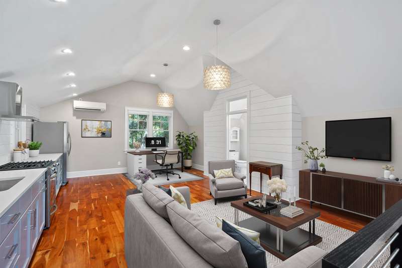 Rare opportunity to own a John Marshall Customs Homes style farmhouse nestled in the heart of Davidson...one of North Carolina's most sought after towns. A rare blend of timeless design and modern luxury. Near 4,400 sq ft of thoughtfully designed living space featuring exquisite architectural details. They do not build them like this anymore- 5" solid cherry wood floors, the artisan millwork throughout, solid wood shaker style interior doors, solid mahogany exterior doors. Gourmet kitchen with a large center island and Thermador appliances all open to the vaulted ceiling dining room. Entertainers dream! Back yard surrounded by lush gardens, mature crape myrtles, and patios for days. Studio apartment completed in 2019 at the same design level. Use as a guest suite, private office, multi-generational retreat, or as an income producing opportunity. Just steps from Davidson's vibrant shops and restaurants offering a lifestyle of sophistication, convenience and community. And you can have a pool. The Town of Davidson says so...in writing.