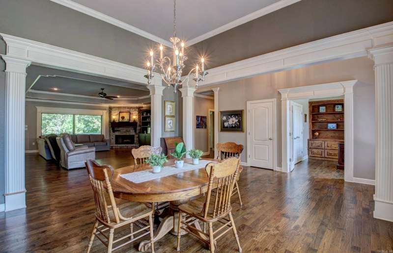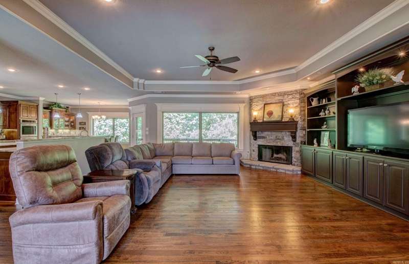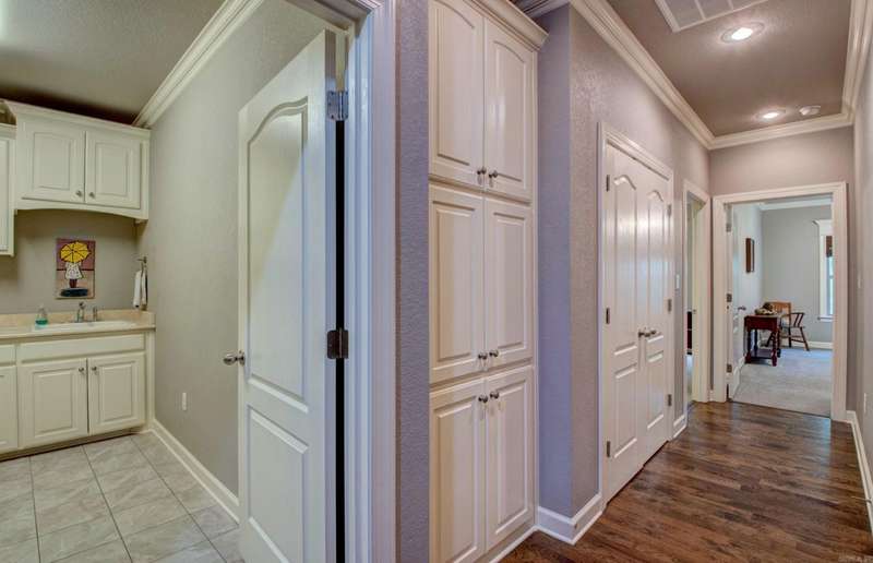BEAUTIFULLY CUSTOM BUILT HOME! You will love this mostly one-level living! All areas on main level with exception of the Media/Bonus Room upstairs. This home offers beautiful hardwood floors with lots of lovely details throughout, and the storage is just fantastic! Very spacious Great Room has a wall of built-ins and corner fireplace. Wonderful kitchen with abundant counter space and storage galore. Cooking is made easy in this one! The Primary suite is quietly situated overlooking the greenspace in back and has a wonderful spa bath retreat and expansive closet space. The guest rooms are separate of the primary, and each have their own baths. GREEN SPACE ON TWO SIDES, Workshop/storage area under house. Floored attic storage also. Agents: **See Remarks on showings**