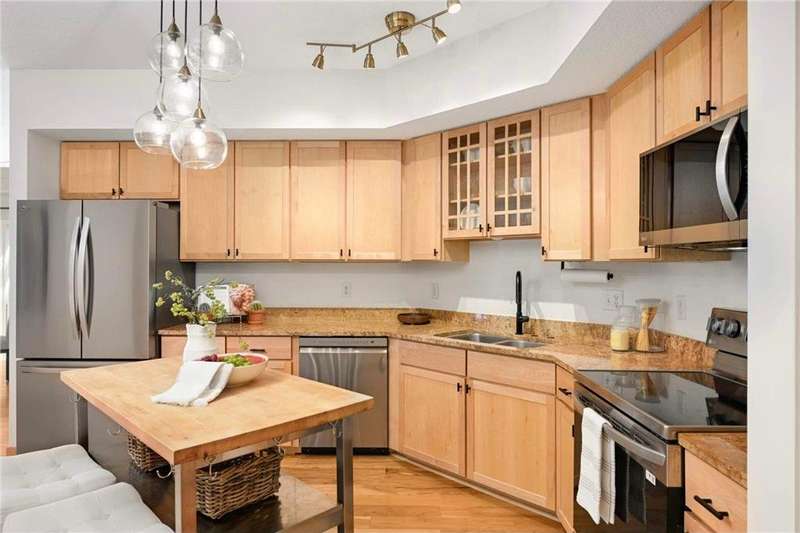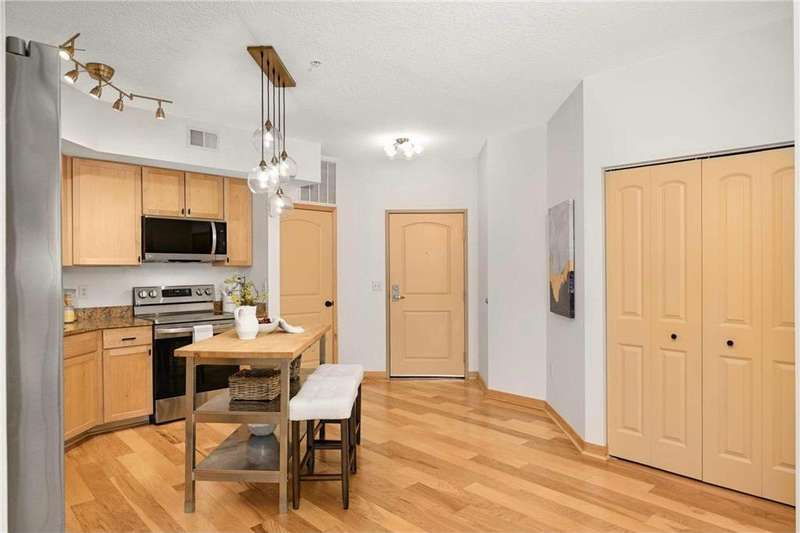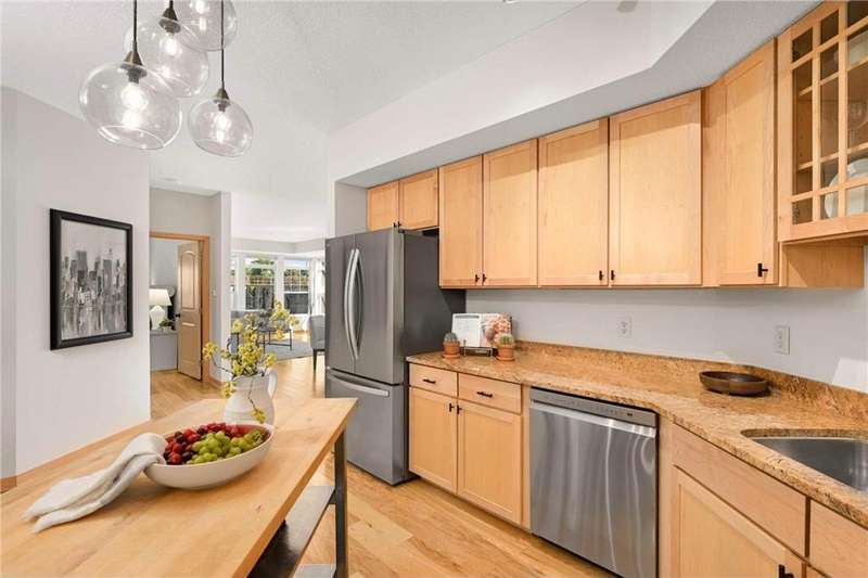 Corner unit with amazing natural light. Owner's bedroom has two closets. Natural maple wood finishes, granite countertops. stainless appliances: replaced refrigerator, oven, dishwasher, microwave in 2023. Installed engineered hickory hardwood flooring in 2019. Replaced all light fixtures in 2020 and replaced water heater in 2022. Freshly painted in 2025 in preparation for selling! Fantastic location west of 100, Uptown, West End, DT and multiple shopping areas. Seller has paid roof replacement assessment in full.