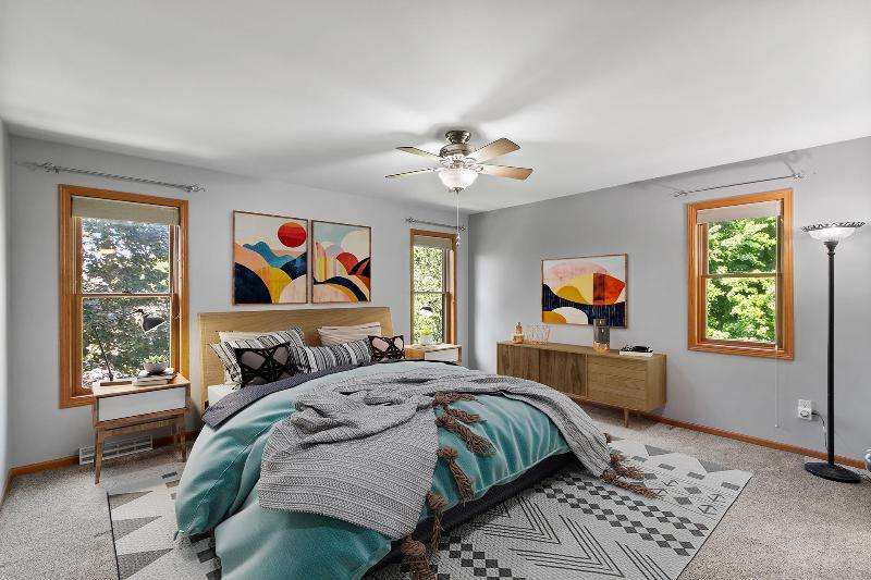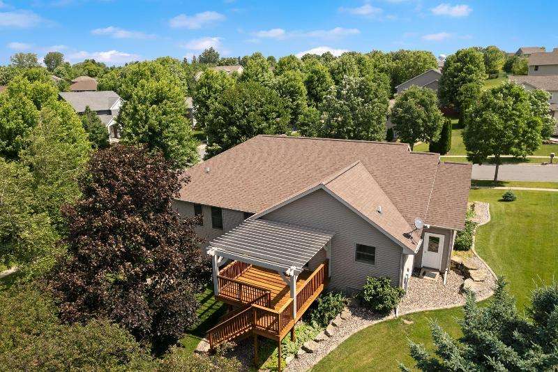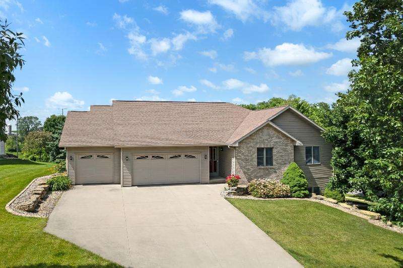 You will love coming home to this absolutely Immaculate 5 bdrm, 3 ba ranch located on a pristine, manicured corner lot! The owner's have loved this property & attention to detail shines throughout! Amenities include soaring cathedral ceilings & gas fp in the great rm, 9' ceilings, oak 6 panel doors, spacious KT w/all appliances, breakfast bar & pantry. Patio doors lead to a large trellised like-new deck shaded by trees - a perfect space for relaxing! Oversized mud room/laundry. The Primary suite is a restful respite w/private ba & walk in closet! The exposed lower level offers an abundance of living space w/ a large rec room for entertaining with walkout to patio, 2 bedrooms and a flex space perfect for a private home office! Outside you'll find shade trees & mature landscaping