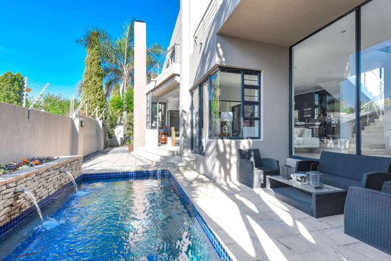 Clustered Elegance in the Heart of Morningside Tucked inside one of Morningside?ÇÖs most exclusive, secure, 24-hour guarded estates, Loudoun Lane, this home redefines luxury family living. Light, volume, and refined finishes flow seamlessly through every space, offering both sophistication and warmth. Features you?ÇÖll love: ?Çó Double garaging with direct access ?Çó Expansive open-plan living and dining areas ?Çó Three lounges, plus a sleek open-plan kitchen ?Çó Enclosed, covered outdoor braai/BBQ area for effortless entertaining overlooking the sparkling pool ?Çó Private downstairs study ?Çó Upstairs: soaring double-volume glass ceilings flooding the home with natural light ?Çó Four oversized bedrooms, each with its own en-suite bathroom ?Çó Additional large multipurpose room, currently styled as a private gym Every detail has been thoughtfully considered to create a lifestyle of ease, elegance, and security ?Çö a rare find in central Morningside. It?ÇÖs beautiful. It?ÇÖs bold. It?ÇÖs ready for you.