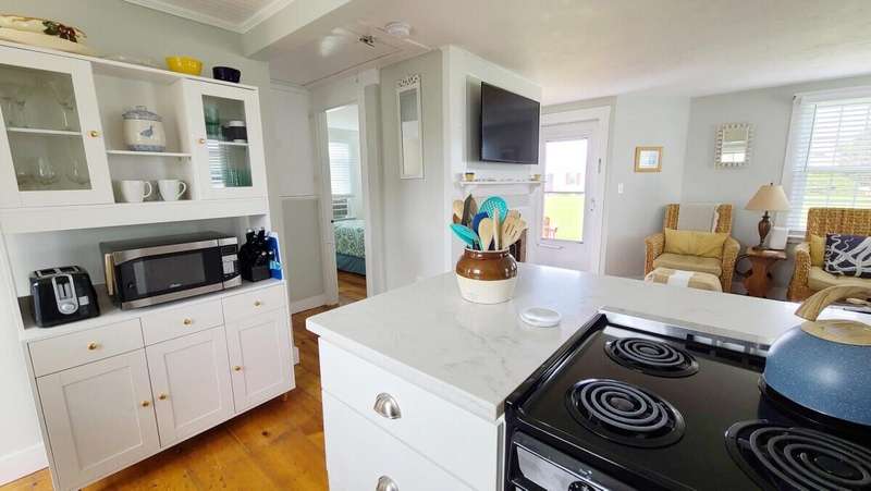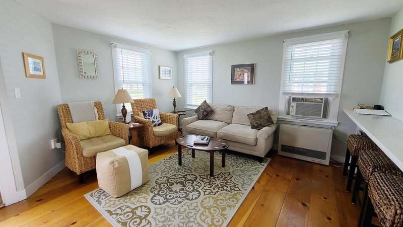Charming Detached 2-Bedroom Cottage in Pilgrim Colony at Beach Point -This delightful seasonal condo offers all the character of a classic beach cottage with thoughtful updates throughout. Features include new windows, a new roof, newly painted exterior, a beautifully redone kitchen and bath, warm wood floors, and new split air/heating units. The home is filled with natural light and cozy touches, including a wood-burning fireplace and solid-surface countertops.Part of a 9-unit condo association, the property enjoys a lush green lawn, beach access, common areas, and a private back patio complete with an outdoor shower. Additional highlights include two parking spaces, pets permitted for owners, and an established strong weekly rental program. Offered turn-key (minus art & personal items), this cottage is ready for you to enjoy seaside living at its best.