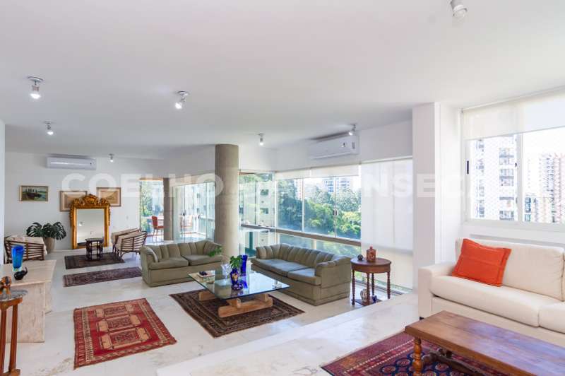 Charmoso apartamento com 272 m² úteis impecávelmente bem distribuídos.. Andar alto com vista permanente para o Parque Burle Marx. Charmoso living com vários ambientes, lareira, sala de tv, escritório, sala de jantar, sala íntima e sala de almoço,Na parte íntima espaçosas 4 suítes completas e a master com terraço. 4 vagas mais generoso depósito na garagem. Condomínio com lazer completo.