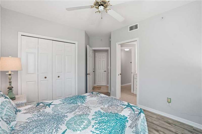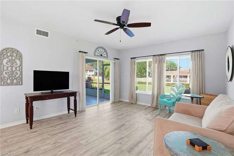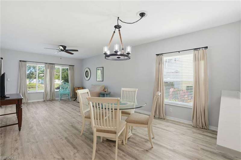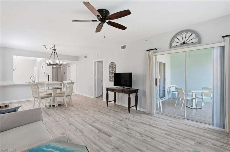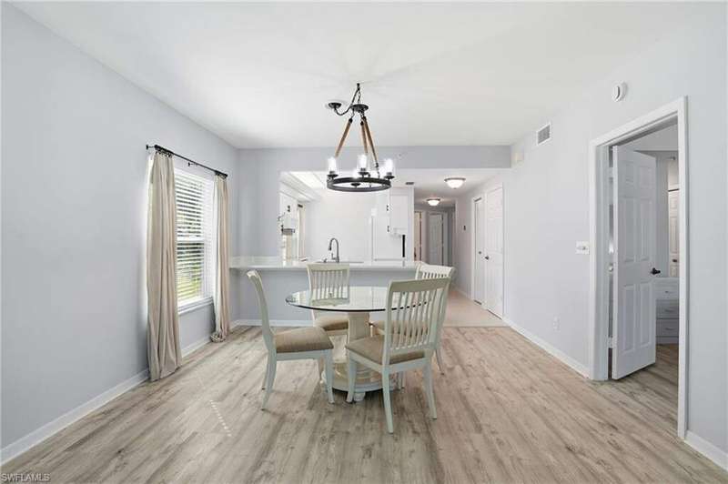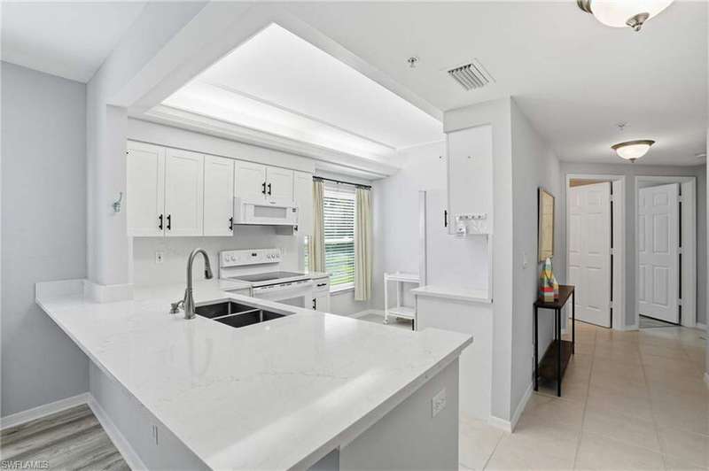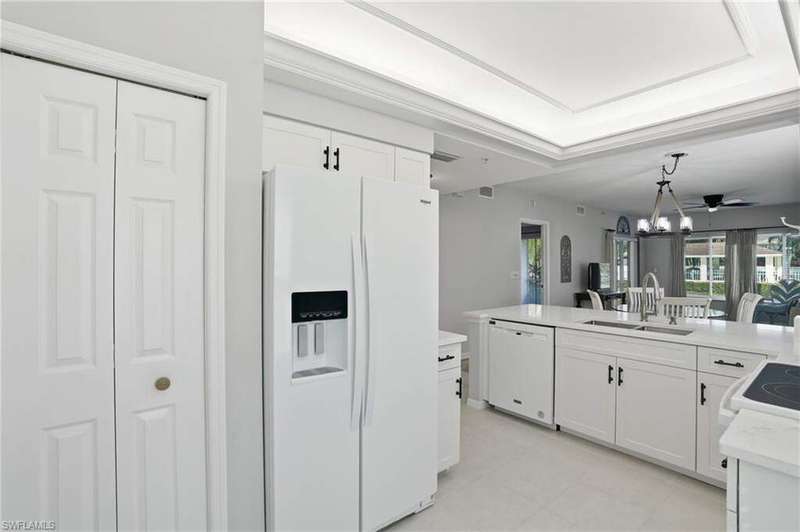 Discover a rare gem in the highly sought-after Eagle Pointe Condominium Community, a serene 55+ haven in the heart of Bonita Springs. This stunning, fully furnished condo boasts an array of modern upgrades, including a remodeled kitchen and bathroom, new appliances, flooring, cabinets, countertops, hurricane windows, A/C (10/25), and electric panel (10/25). Freshly painted walls and ceilings enhance the light-filled interior, accentuated by elegant tray ceilings and picturesque views of the pool and lush landscaping. See supplement for a full list of the upgrades throughout. The primary suite offers a private retreat with an adjoining bath and walk-in closet with double sinks and shower, while the split-bedroom layout ensures guest privacy. Ample pantry and closet space throughout which is rare for a condo and provides exceptional storage. Electric hurricane shutter on lanai will provide peace of mind, and low HOA fees make this home an exceptional value. Perfect for seasonal escapes or year-round living, this move-in-ready condo is just minutes from Bonita Springs' finest attractions, including pristine beaches, Coconut Point Mall, Old Bonita, Miromar Outlets, RSW International Airport, and a variety of dining options. Don't miss this opportunity to own a meticulously upgraded home in a prime location-see the supplement for the full list of enhancements!