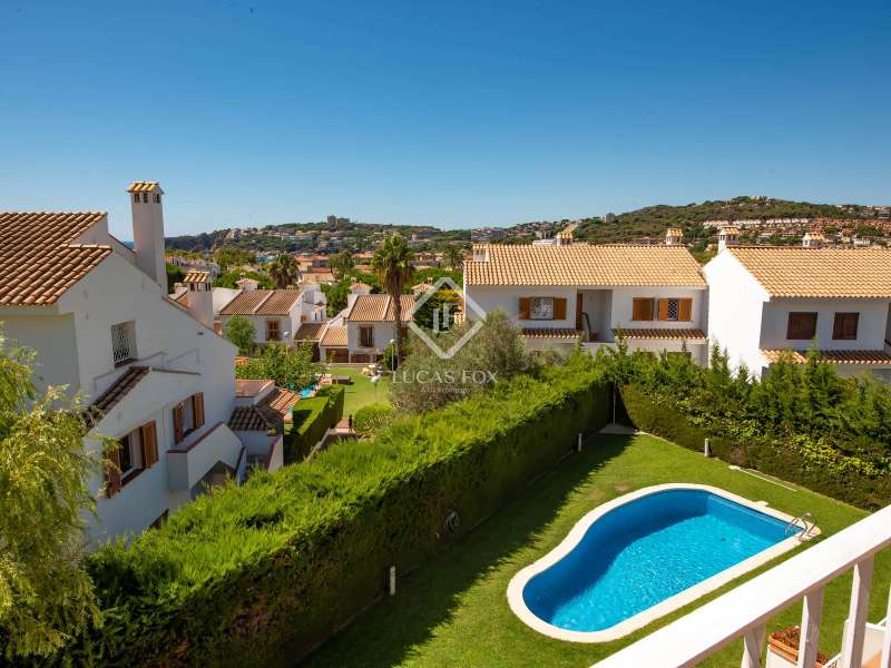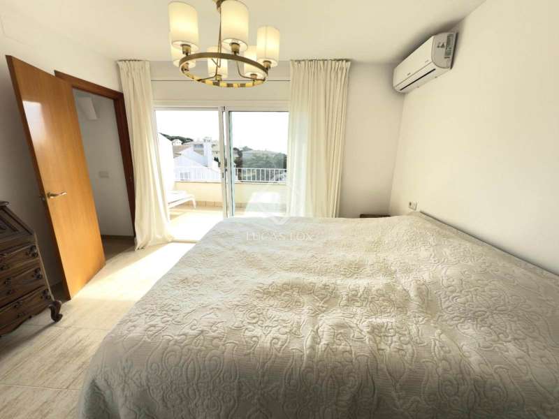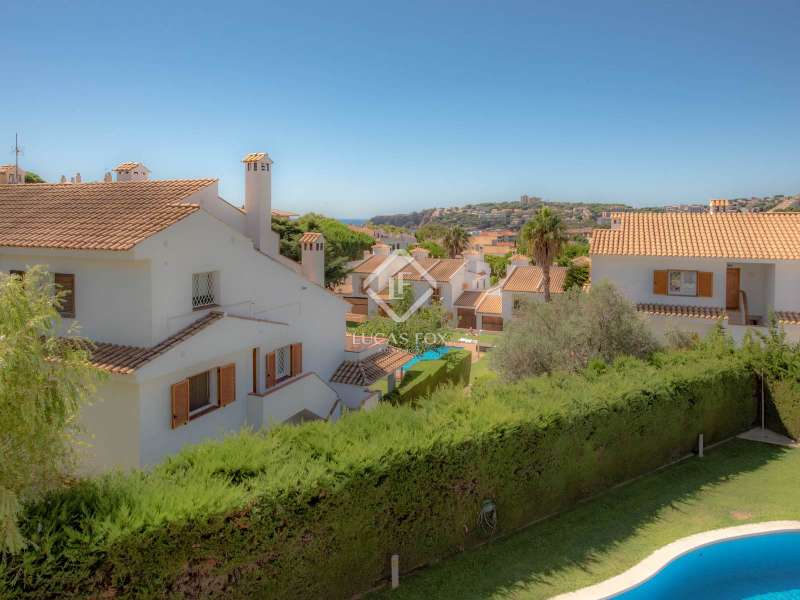 Lucas Fox presents this semi-detached townhouse with sea views in one of the most exclusive areas of S'Agaró, just a five-minute walk from the beaches of S'Agaró, Sant Pol, and Sa Conca. It is located in an elegant and quiet residential area, in a small community of just six residents, just a few minutes' walk from the centre of S'Agaró. The southerly aspect property is very bright and cozy, and has access to a communal pool and garden for the whole family to enjoy. The house has a living area of approximately 100 m² spread over three floors. On the ground floor, we find a bright living-dining room with access to a large private terrace that connects to the communal area. It also includes a small, well-equipped open kitchen and a guest toilet. On the first floor, there are two double bedrooms with built-in wardrobes, one of them with a balcony overlooking the pool, and a full bathroom . On the upper floor is the main bedroom, which includes a private bathroom, dressing room and a large terrace with views of the sea and the garden. From the ground floor of the property , you can access the private box-type garage located in the basement, which has an automatic door, a storage room and a laundry area. A perfect property for those seeking an elegant and functional home, ideal both as a holiday home and year-round, where you can enjoy the tranquility, comfort, and proximity to the sea that characterize S'Agaró.