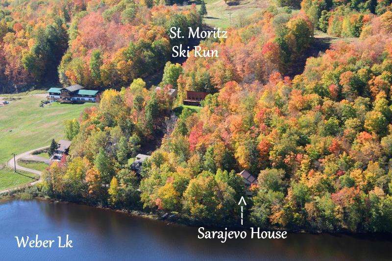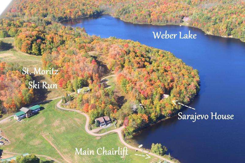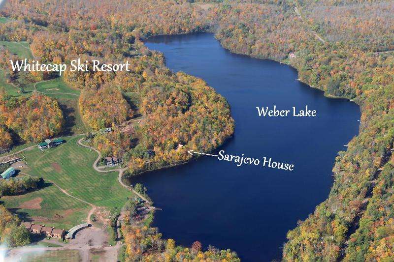 SARAJEVO HOUSE, a 4 or 5 Unit Chalet Lodge located at the base of Whitecap Mountains Ski Resort & on the Shores of Weber Lake. This massive approx 4622 sqft European Style Building has 5 levels with two 3 Bedroom/2 bath vacation rental units, two 2 bedroom/1bath rental units, & a 5th studio type apartment with a huge loft bedroom on the top 2 floors of the lodge. The stunning location has to be seen to be believed, as you are built into massive granite ledges, & the views of Weber Lake are simply breathtaking. The building comes turnkey w/all furnishings & appliances included, & amenities include multi-levels of patio decks & balconies, metal roof, lp gas in-floor heat, municipal water & sewer, 2 fireplaces, new flooring & kitchen cabinets, & an end of the road location. Not only is this an amazing winter rental at base of a great ski resort, but the appealing visuals of being on beautiful Weber Lake will delight spring, summer, fall renters. There are 7 kayaks included.