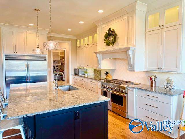 OPEN SUN 2-4, Oct. 26th- Lovely Madison AL home w/ 4664 SF, 5BR, 6 BA basement home with pool, 3 car garage, 291 SF workshop +1800 SF of unfinished space all built in 2021! This home offers luxury finishes, high ceilings, lux kitchen w/ island, high end app's, pantry all open to the living room with center FP & built ins. The eat in area opens onto the covered backporch that looks over the pool. The primary suite has vaulted ceilings, elegant BA w/large WIC, a great floor plan with home office, formal DR, kitchen, primary & guest BR & laundry room all on the main level; Upstairs you will find 3 more BR's; Basement level you will find:rec room, storm shelter, full BA & access to pool & porch.