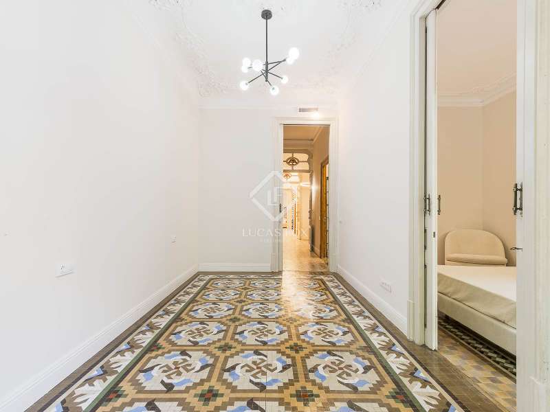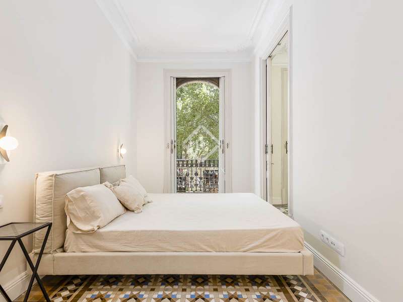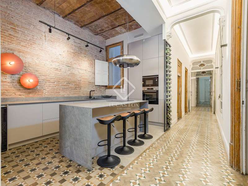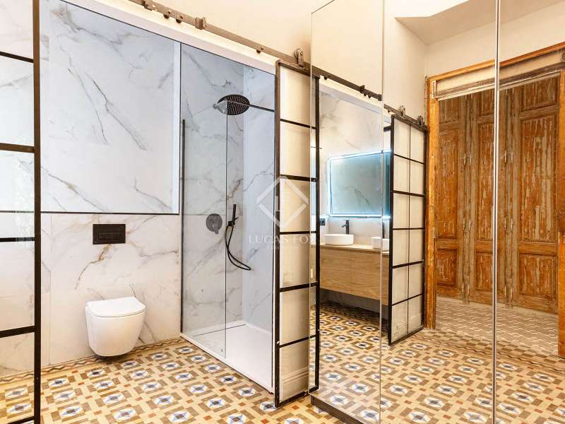 An exceptional apartment with 147 m² of built area and 126 m² of usable area, located on the main floor of a period building with historic character and 3.5-meter-high ceilings. The property stands out for its spectacular 395 m² private terrace, a unique exterior space in Barcelona that offers multiple settings for relaxing, gathering, and making the most of the Mediterranean climate. The property has been renovated with exquisite care, preserving valuable original features such as the Catalan vaulting ceilings, decorative moldings, hydraulic tile floors, and restored woodwork. It features a spacious living-dining room with direct access to the terrace through an elegant glass-enclosed gallery, ensuring natural light throughout the day and a harmonious connection between the interior and exterior. The open kitchen, by the renowned Santos brand, combines minimalist design and functionality and is equipped with high-end Bosch appliances for everyday comfort and efficiency. The night area includes a master bedroom with an en-suite bathroom and an exterior balcony, a second double bedroom also with access to a balcony, a third guest bedroom, an additional full bathroom , and a guest toilet. The impressive terrace features various areas , including a barbecue area ideal for outdoor gatherings and a modern bioclimatic pergola that offers shade and comfort year-round. There's also a 38 m² (30 m²) exterior annex converted into a wellness spa. This space functions as a separate loft with a kitchen, full bathroom , living area, and sauna—perfect as a guest house, private gym, or exclusive relaxation area. Located in the centre of Barcelona, this property is surrounded by restaurants, shops, traditional markets, art galleries, and all kinds of amenities, as well as excellent public transport connections. Its combination of history, modernity, spacious exterior , and strategic location make it a unique opportunity both as a luxury permanent residence and as a premium investment in the city.
