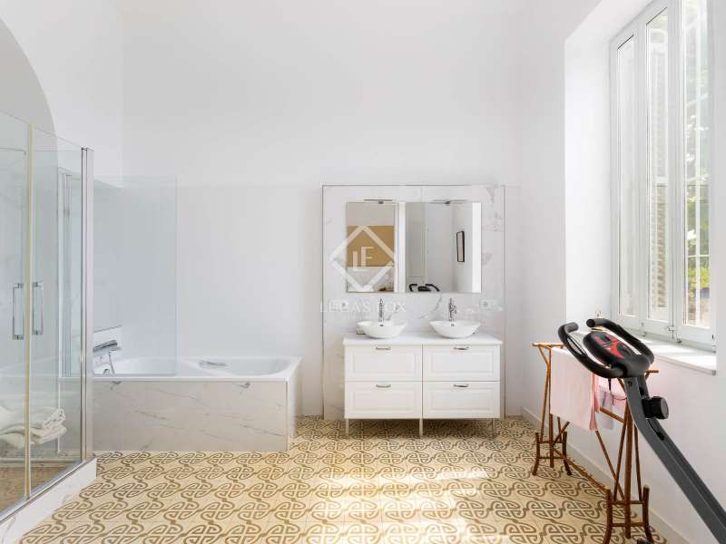 Completely renovated stately home located in the very center of Argentona. It has been carefully restored while preserving its original character: hydraulic tile floors, very high ceilings, large windows, interior arches… all recently revitalized to provide an elegant, timeless, and functional style. On the ground floor, we are welcomed by a spacious hall with very high ceilings and a great sense of openness. From here, there is access to a multipurpose room with a fireplace, to a bedroom or additional multipurpose room, to the living-dining room with a fully equipped open-plan kitchen, and to a spectacular porch that connects with the beautiful garden. On this same floor we also find a complete guest bathroom and several exits to the outside. The upper floor houses the sleeping area, with a total of five bedrooms: two of them with private bathrooms and three that share a full bathroom. All bedrooms offer a great sense of space and abundant natural light. The master suite stands out, featuring a large walk-in closet, a spacious bathroom, and a private terrace with spectacular views. The garden is one of the property’s main highlights, thanks to its generous dimensions, the completely flat plot, and the surrounding tranquility. The saltwater pool is strategically located at the end of the plot to make the most of the landscaped area. As a unique feature, the estate includes a consecrated chapel from 1929, designed by the architect Lluís Bonet i Garí, with original paintings on the apse by Antoni Vilà Arrufat. Architecture with history, transformed into a home. Additional features include: zoned air conditioning, natural gas heating, automatic shutters, indirect lighting in common areas, outdoor storage rooms, alarm system, fiber optic internet, video intercom, and automatic gate. All of this on a 1,380 m² plot facing south/east, ensuring privacy, natural light, and a quality environment.