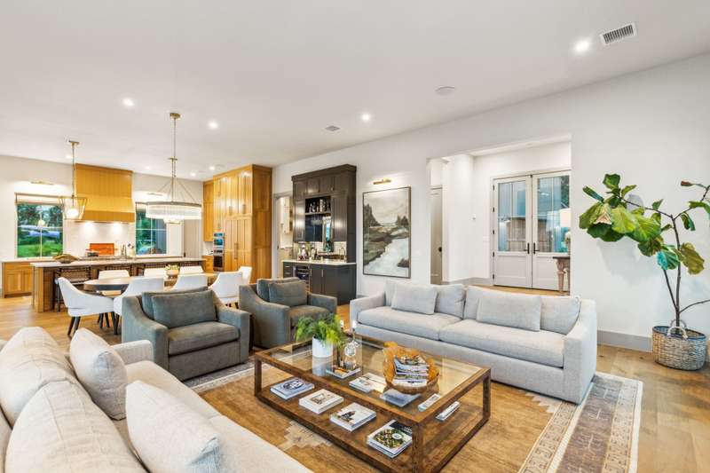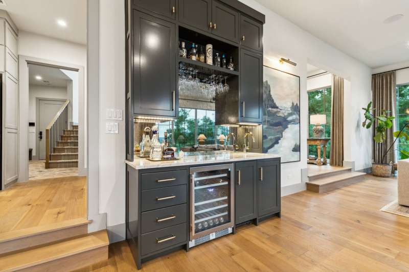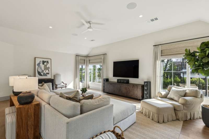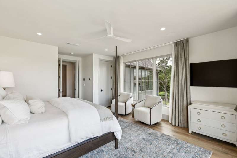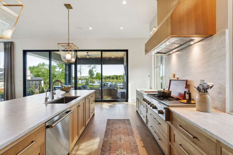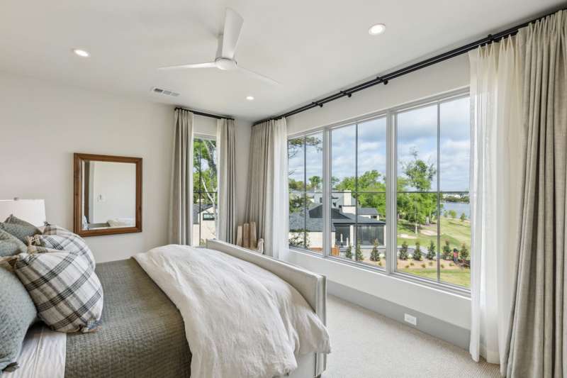 Tucked beneath a canopy of trees on a premium oversized lakefront lot in Long Cove, 13160 Woodsy Way blends luxury, comfort, and privacy in a beautifully designed retreat. With over 4800 square feet, plus additional bonus space above the garage, this custom oasis offers stunning lake views and direct access to the shoreline trail, perfect for long walks or golf cart rides.The open-concept layout connects expansive indoor and outdoor living spaces. A premium sound system runs throughout the home, including the large upstairs game room and covered outdoor porch with motorized screens, outdoor wood-burning fireplace, and built-in patio heatersperfect for year-round entertaining. Gather around the outdoor fire pit or soak in the views from the sunning deck, all framed by a professionally designed landscape.Inside, the chefs kitchen features Taj Mahal quartzite countertops, premium appliances, custom cabinetry, a spacious walk-in pantry, and a large island ideal for entertaining. A marble-clad primary bathroom, Providence Lane custom drapery and window shades, Visual Comfort lighting, and a two-office setup, including one with incredible lake views, elevate the lifestyle even further.Each of the additional four large bedrooms features its own en-suite bathroom, with one bedroom designed as a bunk room accommodating two California King beds and two twin beds. Practical elegance continues with a spacious mudroom, custom cubbies, and herringbone brick flooring. An outdoor breezeway is designed to hold two golf carts and connects the home to a two-car garage and carport, and turfed dog yard for furry friends.Peace of mind comes built-in with full exterior video monitoring, lightning rods, a whole-house water filtration system, and a backup generator.Whether youre looking for the perfect weekend escape or a forever home, 13160 Woodsy Way delivers resort-style living in a private, wooded setting just steps from the lake.