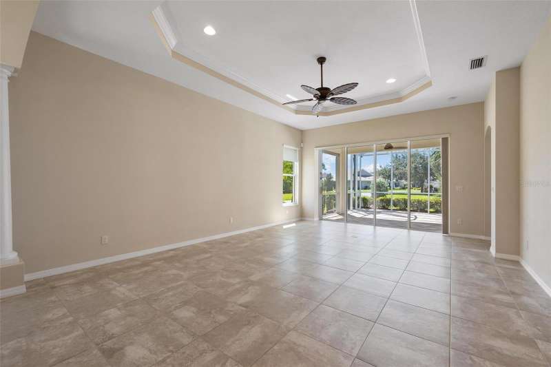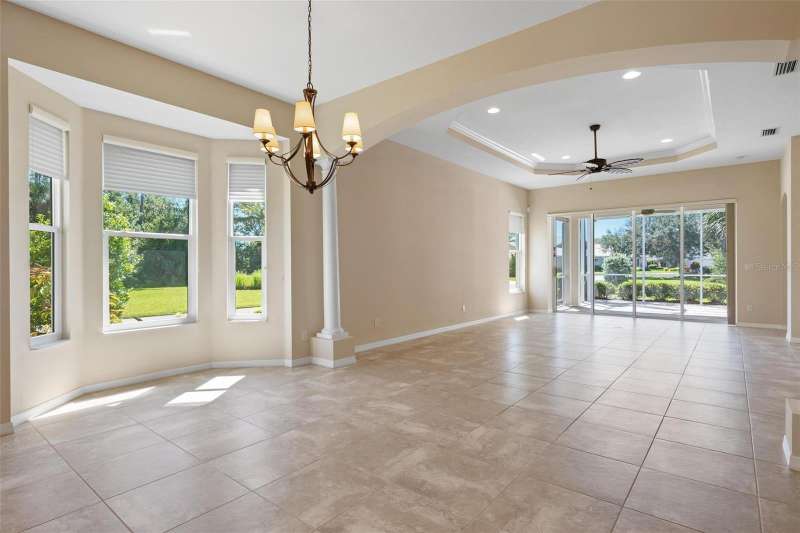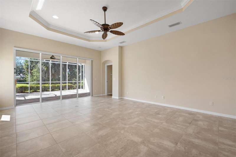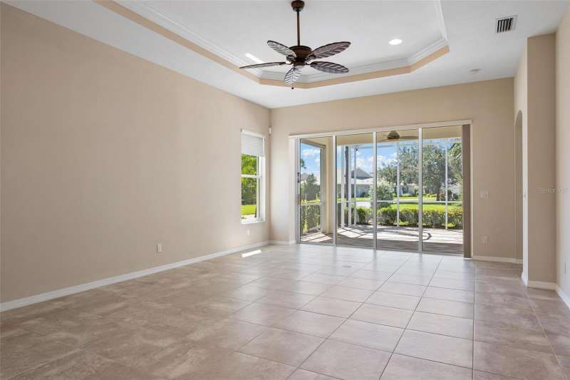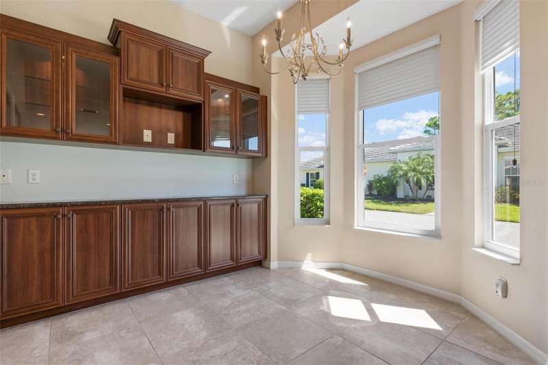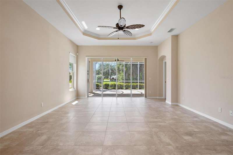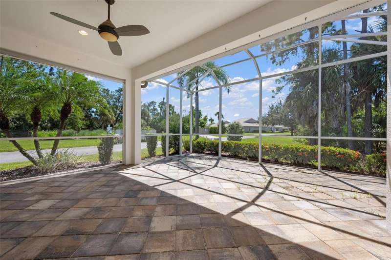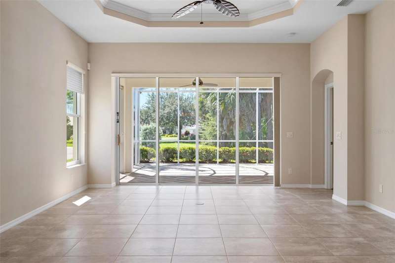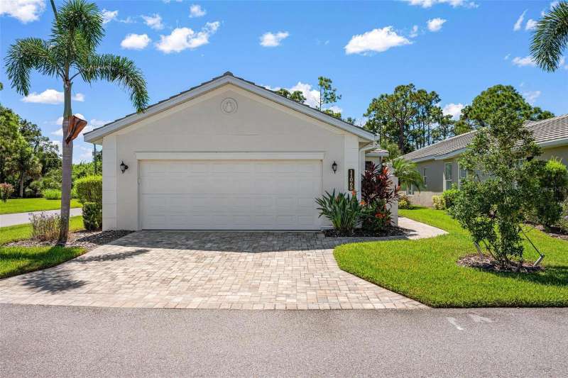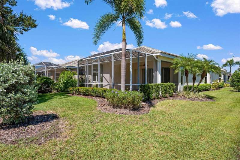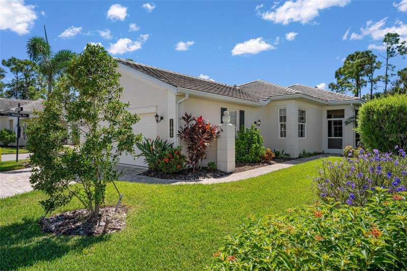 Lovely maintenance-free home in St. Andrews East in "The Plantation Golf & Country Club". Discover worry-free living in this spacious free-standing villa. Roomy kitchen, granite countertops, stainless appliances &, built-in oven. cozy breakfast nook bathed in natural light. Luxurious primary suite featuring dual walk in closets with double sinks, and a large walk-in shower. A flexible layout with split floor plan ensures guest privacy. The second bedroom includes an ensuite bath and walk in closet, while the third bedroom/den/office offers versatile space with a full closet.. Elegantly designed with tray ceilings, crown molding and stylish lighting creates a serene inviting atmosphere. An expansive lanai nearly 800 sf perfect for entertaining or relaxing. HOA fees cover exterior, roof reserves, exterior painting, roof, lawn care, pest control, high speed internet, community pool, clubhouse and management. The Plantation membership is an optional membership with two 18-hole championship golf courses, 13 Har-Tru tennis courts, six pickleball courts, bocce ball, a fitness center, Jr Olympic pool and exceptional dining and activities. Prime location near Gulf Beaches, Wellen Park, Downtown historic Venice, dining, shopping and easy highway access.