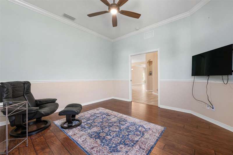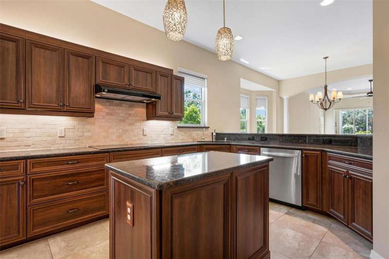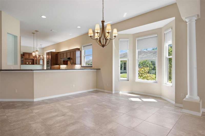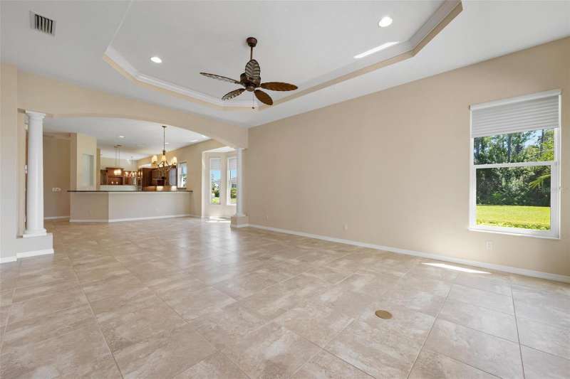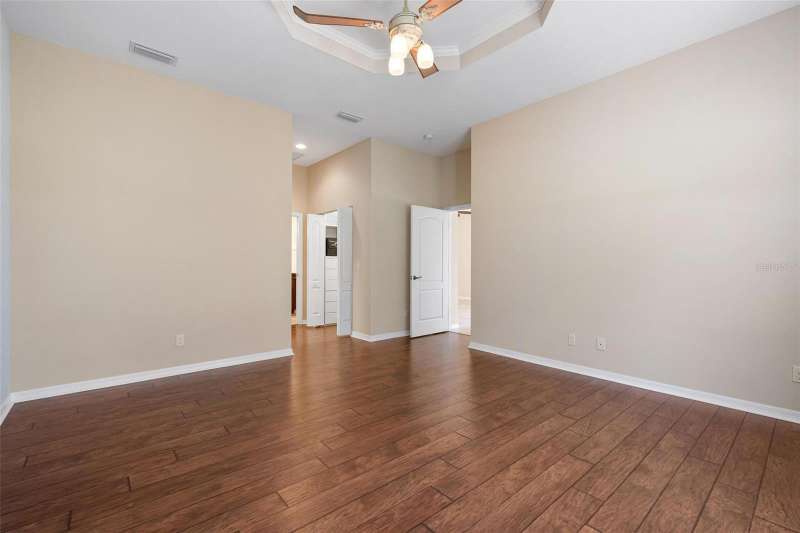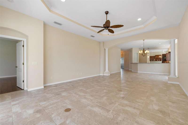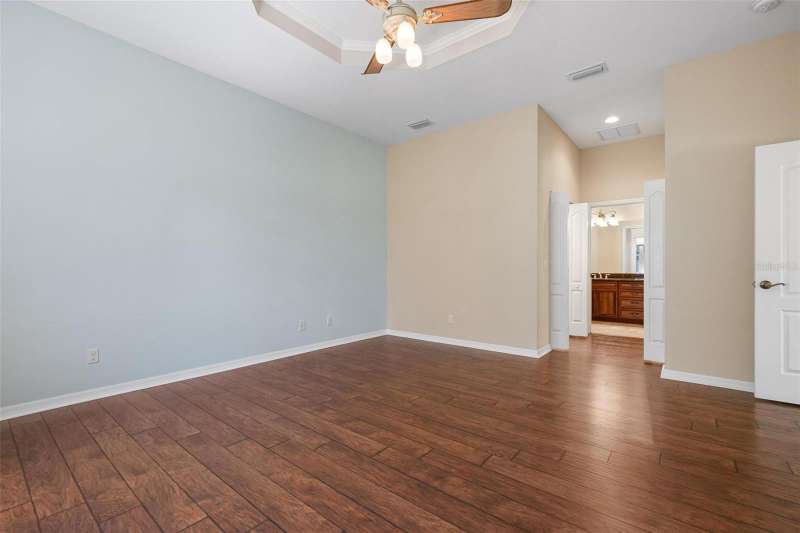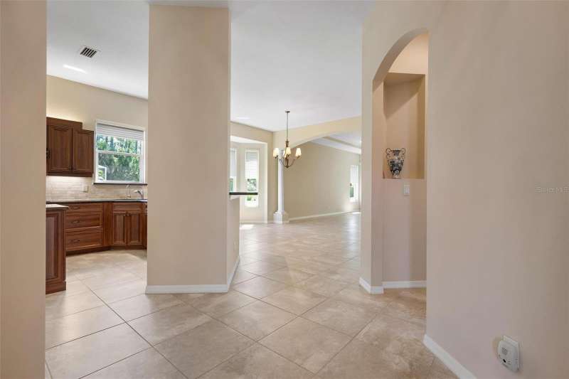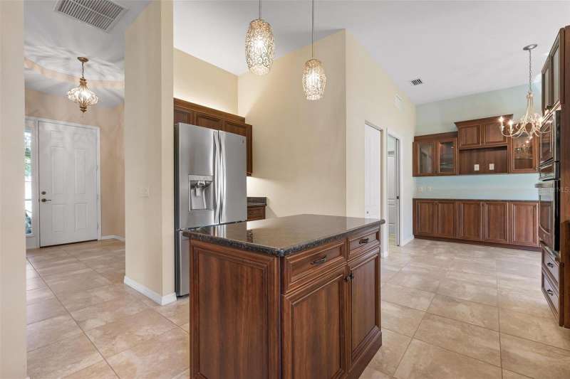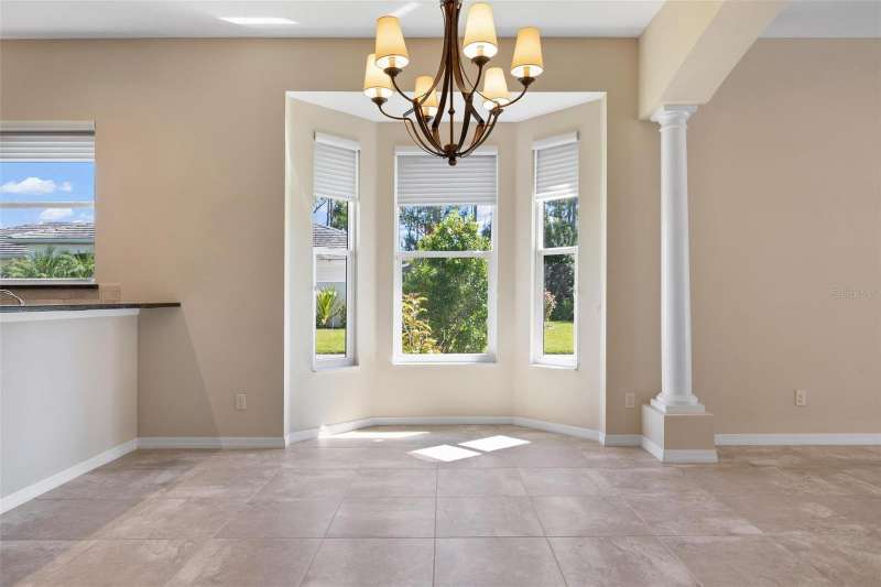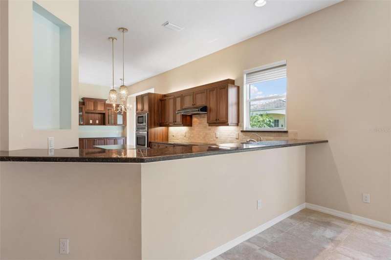 Lovely maintenance-free home in St. Andrews East in "The Plantation Golf & Country Club". Discover worry-free living in this spacious free-standing villa. Roomy kitchen, granite countertops, stainless appliances &, built-in oven. cozy breakfast nook bathed in natural light. Luxurious primary suite featuring dual walk in closets with double sinks, and a large walk-in shower. A flexible layout with split floor plan ensures guest privacy. The second bedroom includes an ensuite bath and walk in closet, while the third bedroom/den/office offers versatile space with a full closet.. Elegantly designed with tray ceilings, crown molding and stylish lighting creates a serene inviting atmosphere. An expansive lanai nearly 800 sf perfect for entertaining or relaxing. HOA fees cover exterior, roof reserves, exterior painting, roof, lawn care, pest control, high speed internet, community pool, clubhouse and management. The Plantation membership is an optional membership with two 18-hole championship golf courses, 13 Har-Tru tennis courts, six pickleball courts, bocce ball, a fitness center, Jr Olympic pool and exceptional dining and activities. Prime location near Gulf Beaches, Wellen Park, Downtown historic Venice, dining, shopping and easy highway access.