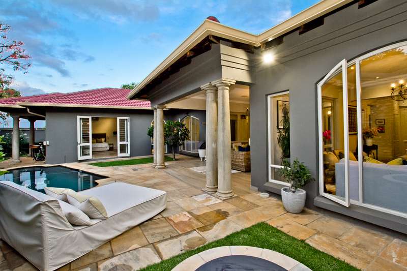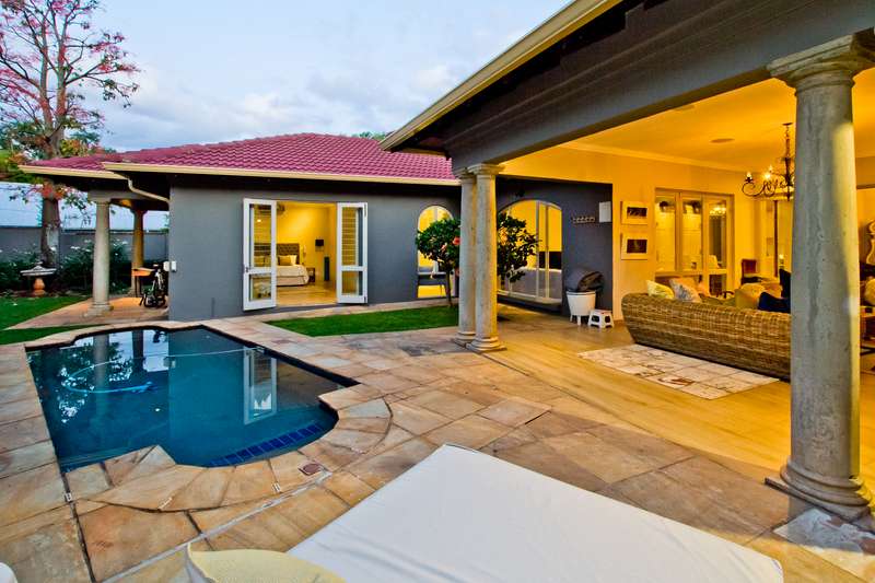 Tucked inside the gated cul-de-sacs of Illovo, a rare opportunity awaits. An amazing 3 bed pied-a-terre - the perfect alternative to complex living. The entire property has undergone extensive refurbishment and transformation. The result is a luxurious modern home, with an easy open floor plan that enhances the spacious & airy feeling. Refined charm and character meet contemporary elegance in this simplex home. The formal lounge, dining room & family room open to the patio whilst the stunning main suite looks onto a neat manicured garden and pool. The perfect marriage of indoor outdoor living. 3 en-suite bedrooms plus study. Streamline kitchen, beautiful bathrooms & quality finishes. Additional extras include : central vacuum system, 4 aircons, generator / inverter. Off the dining room, the enclosed courtyard includes a gas braai plus oven. Double garage plus newly added staff cottage. No exorbitant complex levies & tedious rules - suitable for those wanting a lock-up and go lifestyle without compromising on space or security.