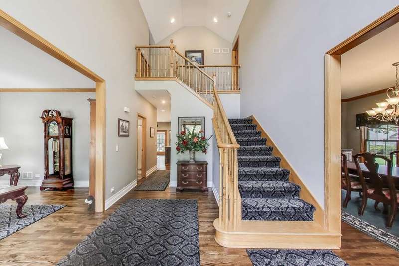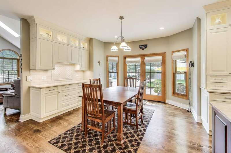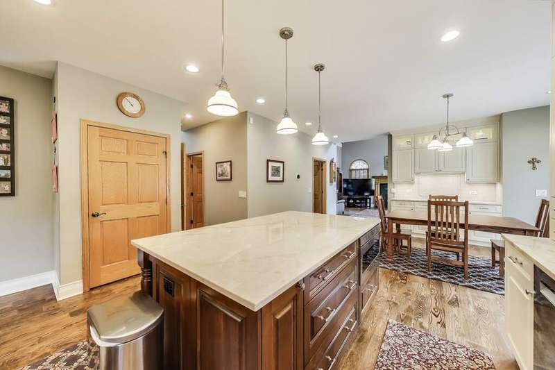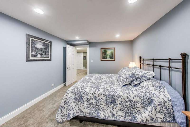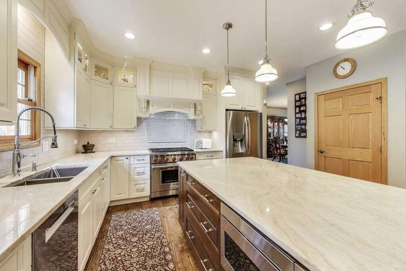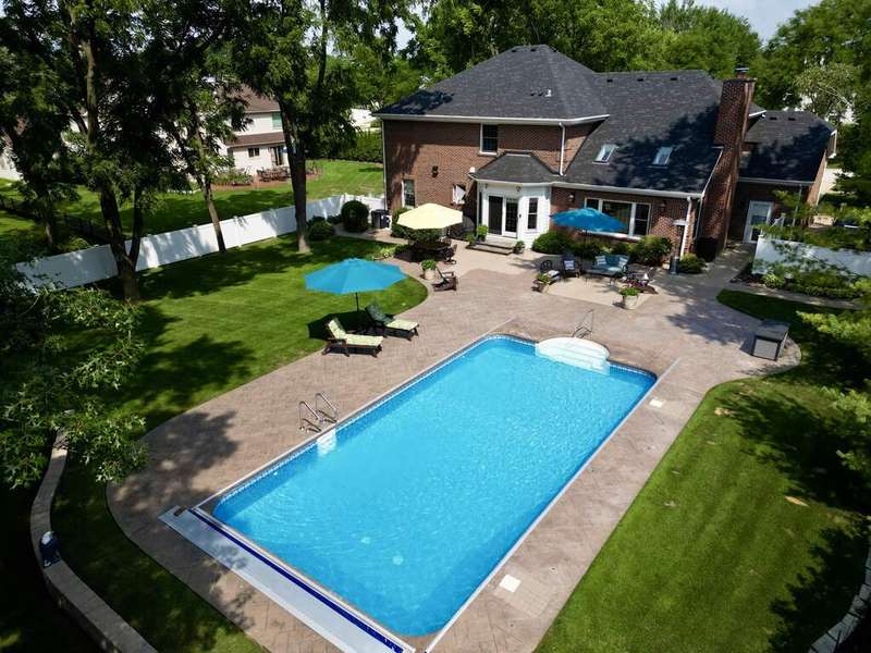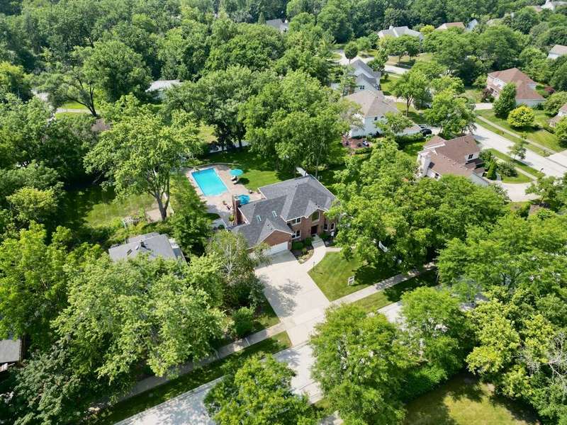 Exquisite 6-Bedroom Home with Gourmet Kitchen, in-ground Pool, Finished Basement, 3 car garage - Prime Location in award-winning public school District 103 and Stevenson High School District 125, walk to Metra and Sullivan Woods walking trail. Welcome to this impeccably maintained, luxury home nestled on a beautifully landscaped half-acre lot in one of the area's most desirable neighborhoods. Boasting six spacious bedrooms and four full bathrooms, this stunning residence offers a perfect blend of comfort, functionality, and upscale living. From the moment you enter the elegant two-story foyer with its custom staircase, you'll appreciate the thoughtful craftsmanship and timeless design throughout. Step into the heart of the home - a newly renovated gourmet kitchen featuring stunning Taj Mahal quartzite stone countertops, custom cabinetry, oversized island with surround cabinetry, new high-end appliances including the dishwasher and refrigerator, and elegant finishes designed for both everyday living and entertaining. Rich solid oak doors and hardwood floors flow throughout the main level, enhancing the home's warmth and timeless appeal. French doors exit to the large peaceful patio and backyard for morning coffee, exercise, swimming or relaxation at any time. The beautiful kitchen flows into the family room featuring a gas fireplace with the option to also burn wood. The fireplace has a custom crafted mantle enhanced by the natural light streaming through the skylight windows and arched window features. The fully finished basement is a standout and is ideal for extended family, guests, or even multi-generational living. This thoughtfully designed basement offers a second full kitchen, with Kraft Maid custom cabinetry, granite countertops, a full-size stand-up freezer, refrigerator, stove and microwave, an area for a washer/dryer addition, a spacious bedroom, extensive closets, large storage spaces and a full bathroom. The bathroom features Kraft Maid custom cabinetry, double sinks, granite countertops and a spa-like shower. The basement has an exit to the backyard. The basement offers extensive storage and ample space suited for fitness equipment. In the backyard enjoy your own private oasis featuring a heated in-ground pool with a hydraulic, retractable locking cover, large yard play space, all surrounded by six-foot privacy fencing, professional landscaping, lighting, custom designed/built shed and lush greenery - perfect for playing, relaxing or entertaining in every season. Additional highlights include: Extensive storage throughout Impeccable condition - move-in ready. 3 car garage climate controlled Large Dog Kennel with in/out access to backyard. Conveniently located to allow walking to the Metra's North Central Service train, Stevenson High School and the Sullivan Woods walking trail. Schools: Laura Sprague School, Half Day School and Daniel Wright Junior High and Stevenson High School This home combines unmatched convenience with luxury and space - a rare find in a prime location near top-rated schools, transportation, and amenities.
