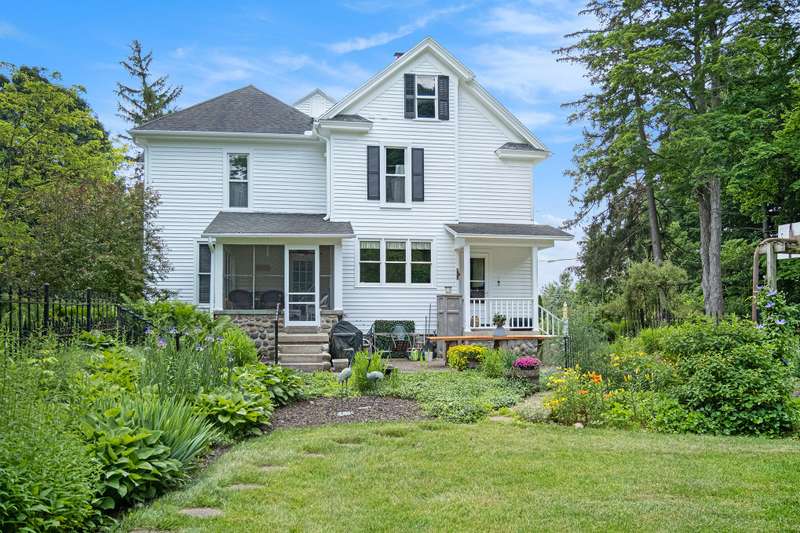 ''Sugar Maple Ridge'': Historical charm blends graciously with new-age comfort and quality in this classic Victorian home on gated 5 acres. *Minutes from Ann Arbor and Brighton and moments to Dexter. *Natural stone wraparound porch. *Spacious foyer with oversized case and base featuring elegant stairwell. *Light-filled living and dining rooms with coved detail. *Beautifully updated kitchen with copper sink, stainless appliances, and custom walnut counters opening onto family room/office with cozy gas fireplace. *Upstairs featuring 4 spacious bedrooms, 2 of which with original pine plank floors revealed, and 2 updated full baths with laundry. *Screen porch opening onto brick patio in secluded fenced back yard with garden house.*Stone 3 car garage. *2800 sq. ft. heated 5 car garage/workshop barn with studio apartment. *Fully restored stone outbuilding with half bath. Exterior completely repainted spring 2025.