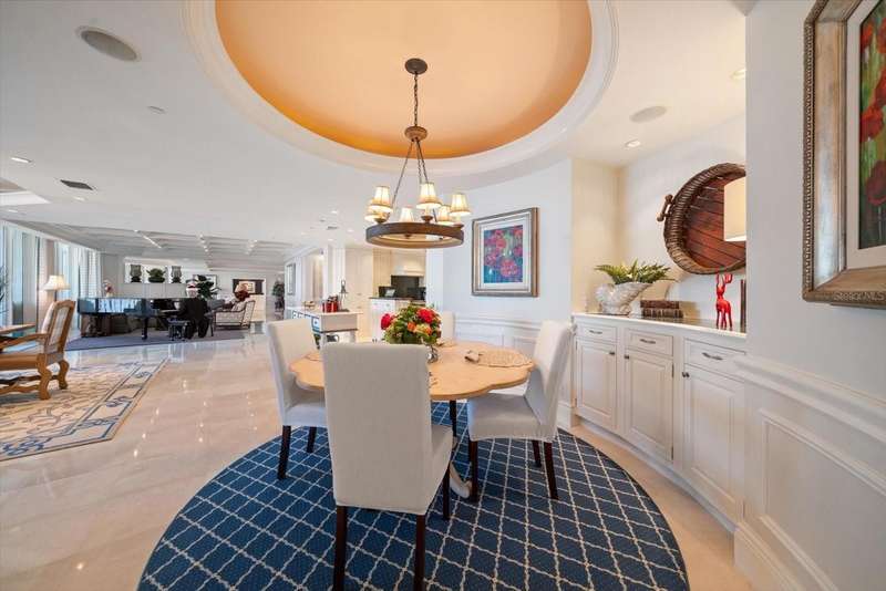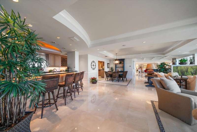 A rare FULL FLOOR DOMAIN! Sophisticated private condominium encompassing the entire sixth floor of Seaside III-this is the best of resort-style living, perfected, personalized and offering elevator to foyer exclusivity unlike any other property within the grounds of the very desirable Belleair Country Club. Discover the pinnacle of luxury living in this remarkable residence showcasing sweeping views from the Intracoastal Waterway to the Gulf waters. Exquisitely furnished and spanning over 6,000 square feet, the entire floor is a seamless combination of maximum space and minimal responsibility providing a superior quality of life without the burdens of homeownership. Designed with both elegance and comfort in mind, the floor plan features formal and informal living areas ideal for entertaining or quiet enjoyment. The chef's dream kitchen is equipped for high-level culinary experiences. With efficient organizational features, high end appliances, custom built-ins, impressive center island, butler’s pantry, and abundant storage, the area serves as a focal point for casual gatherings or creation of exceptional meals. The primary suite is secluded from the main living areas creating a peaceful welcoming retreat with its gracious sitting area. Enjoy the dressing areas and extensive customized closets. A luxurious bathroom complete with a spacious walk-in shower and separate soaking tub is inviting. On the opposite end of the primary suite, three guest suites, each with private baths and generous closets, provide refined accommodations for guests or extended family allowing for additional privacy. Throughout the home, custom millwork, coffered ceilings, signature lighting, artistically etched glass doors, marble flooring, and an impressive fully equipped bar area reflect fine craftsmanship. Floor-to-ceiling windows and doors, and wraparound balconies capture endless water views. This is an immaculately finished property where each item from furnishings to accessories has been selected by a top-tier interior designer-custom made and custom sized creating a refined and gracious retreat. Enjoy private, secure living with a 24-hour guarded gate, secured building entry, two under-building parking spaces, and additional storage. Located in a non-evacuation zone, this residence offers peace of mind and a truly carefree lifestyle—no worries with power failure or water intrusion during storm seasons. Residents of Belleair Country Club enjoy exclusive access to two championship 18-hole golf courses, pickleball and tennis courts, croquet, a fitness center, aquatic programs, boat slips, and fine dining—all within this premier coastal community. A rare offering that embodies the essence of refined living in a fabulous country club environment, this is a key departure from a single-family home-ideal for seasonal residents or frequent travelers.