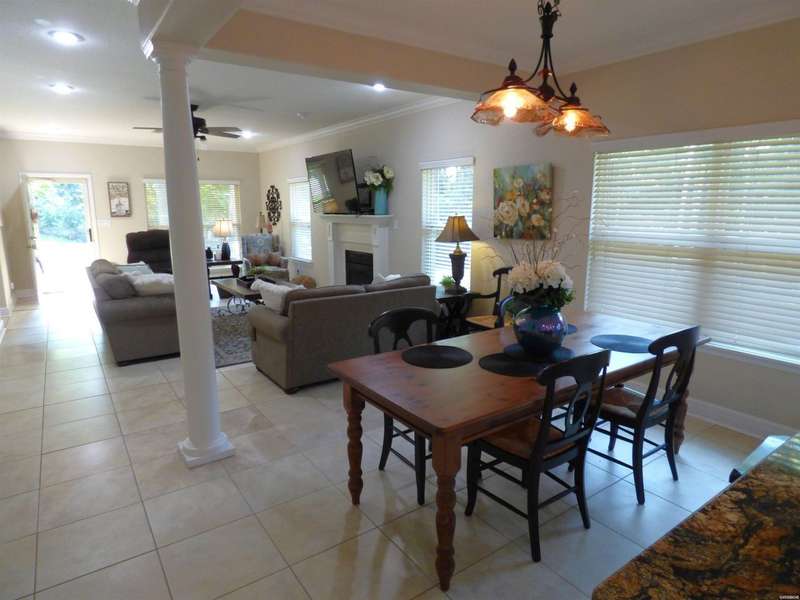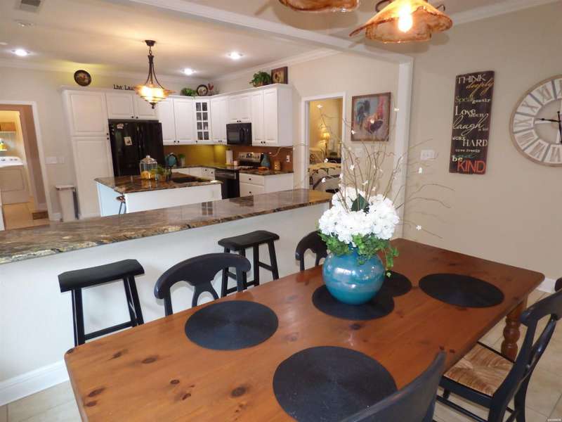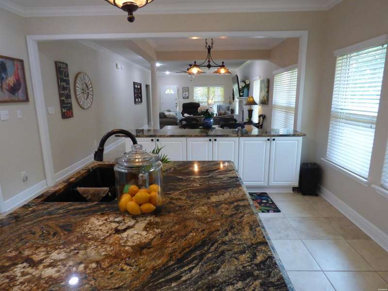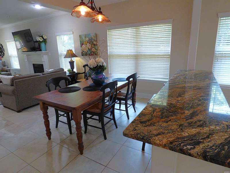 Location, Location, Location!!! Charming Move-In-Ready with Open Living/Dining/Kitchen Floor Plan. Wonderful Great Room with Gas Fireplace, Beautiful Granite in this huge Kitchen made for Cooking and Entertaining! Oversized Utility Room plus a bonus Office/Sewing/Mancave or storage and a back deck. The 3 Bedrooms are a Split Plan. The Primary Suite enjoys Walk-In Shower, private toilet area and Giant Closet. POA mows the grass, neighborhood has a covered pavilion for additional outdoor pleasure.