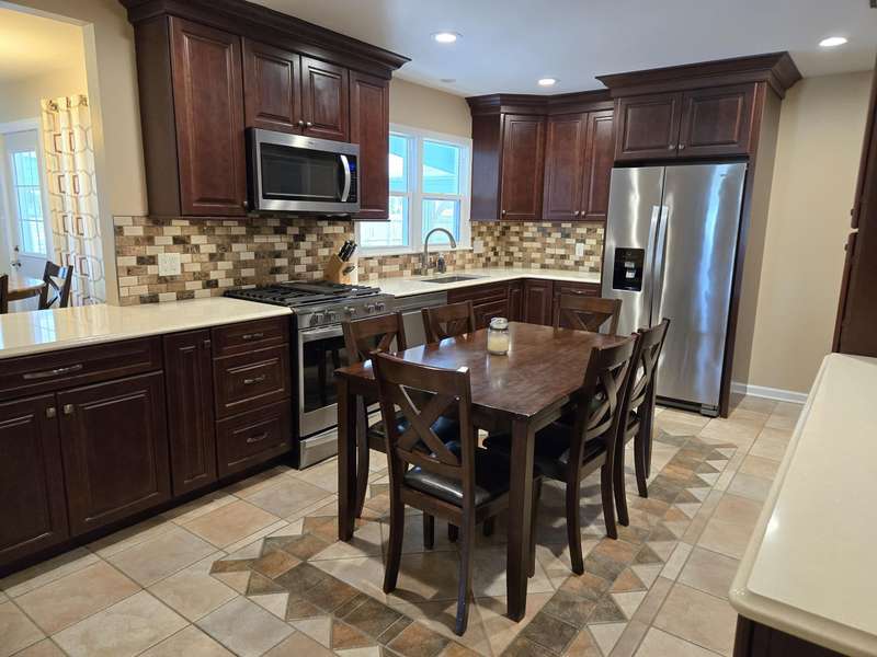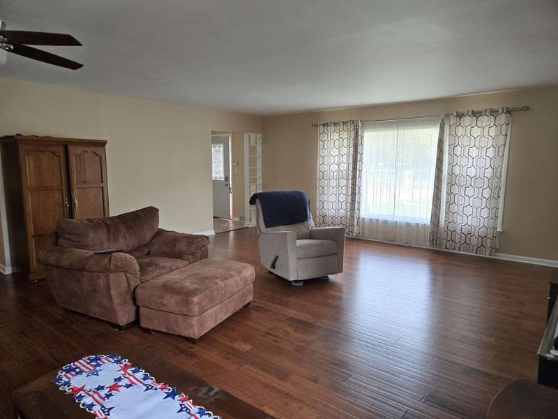 Turn key Ranch style 3 bed 2 bath home. Totally remodeled kitchen, Cherry cabinets, Quartz countertops and ceramic tile. Great room with Hard wood flooring. Primary bedroom with double closet. Remodeled bathrooms. Three season room with skylights. Full finished basement with finished laundry room and kitchenette area with bar refrigerator. Rec room, new carpet. Huge crawl space for lots of storage. Private fenced back yard, with patio and gazebo. Plus shed for storage. Attached garage, concrete driveway and beautifully landscaped. Close to shopping, schools and restaurants. Nothing to do but move in