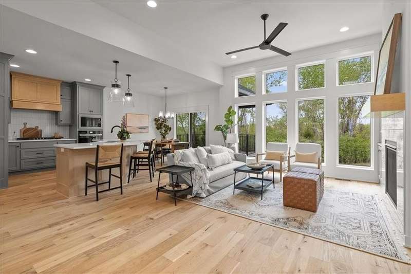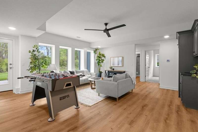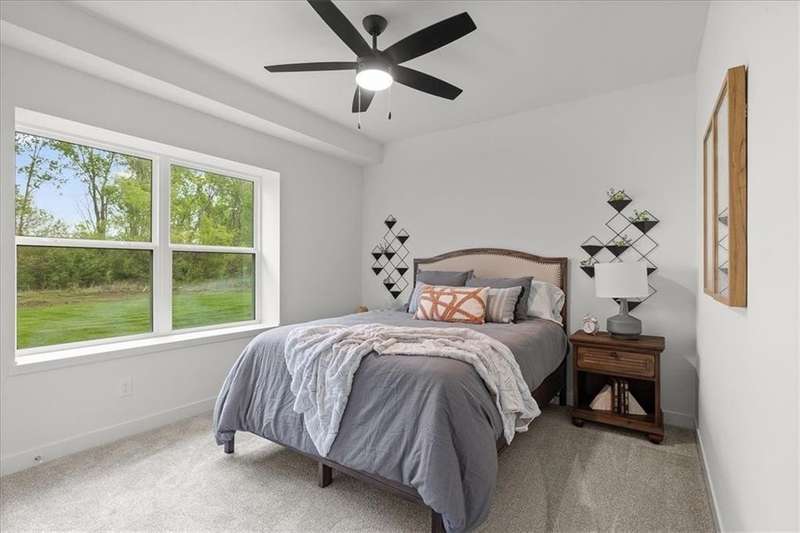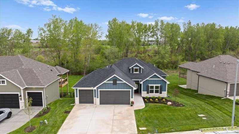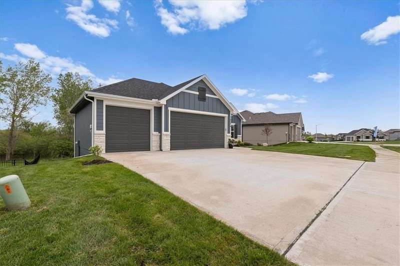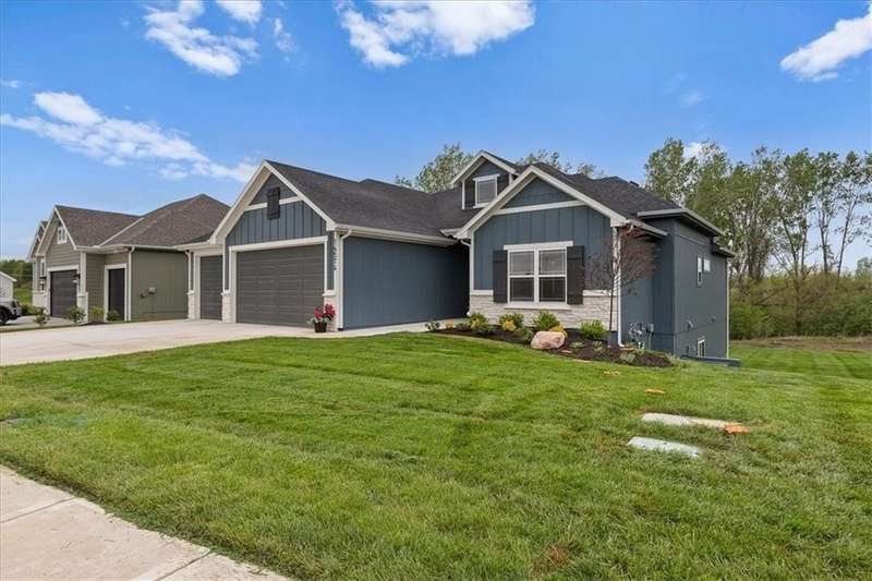 Villas Lot 2. Arista II by BC Residential Homes. Ready Now! This home is on a beautiful walkout lot that backs to trees in a lovely GOLF COURSE COMMUNITY!! Quality construction with many upgrades. The home is Energy Star 3.2 and has zoned HVAC, a 100k BTU 96% furnace variable speed, blown wall insulation of R-15, a 4 ton 16 SEER air conditioner variable speed as well as an IAQ humidistat to measure and control humidity. Bullnose corners, quartz in kitchen and all bathrooms, zero entry primary shower and back entrance, deep soaking tub in hall bath, stair lights and under cabinet lights on timers, and a covered composite deck are just a few of the features of this home. Just 10 minutes to the Legends shopping and entertainment and 30 minutes to the airport, Falcon Lakes is conveniently located on K-7 for easy highway access. Acclaimed Basehor-Linwood Schools. Monthly HOA dues include lawn maintenance including weed and feed and sprinkler turn on and off as well as snow removal over 2 inches.