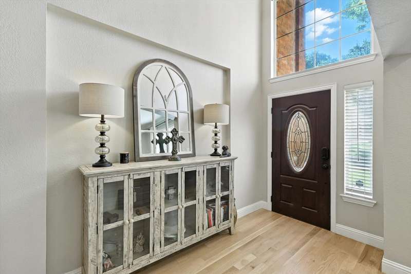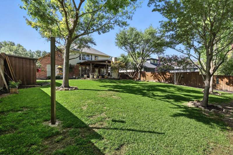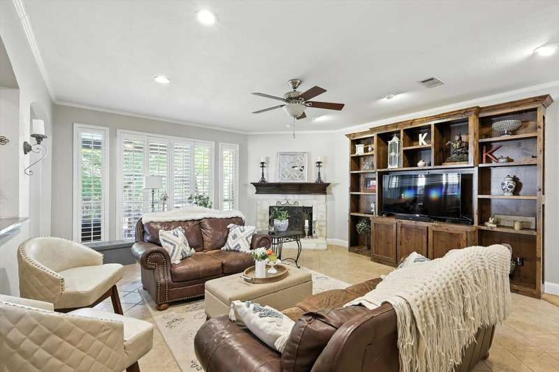 Seller to offer 2-1 Buy down for Buyer with an acceptable offer when using preferred lender! Gorgeous Park like Backyard! Relax on the large covered patio with Stone fireplace surrounded by towering trees, lush lawn and landscaping, a quaint built-in shed and enclosed with a board-on-board fence, making this yard pet and kid friendly. Beautiful updated wood flooring leads through the entry, living office flex room, dining room and primary suite. The open family room with custom built-in cabinet and gas log stone fireplace flows for easy entertaining. Light and bright with a wall of windows to view the backyard. The spacious kitchen with granite countertops, pot rack over the island, walk-in pantry, stainless steel appliances and breakfast area with window seats. The primary suite is downstairs, and 3 bedrooms and game room up. Breakfast area has window seats for plenty of seating. Plantation Shutters in Family, dining and primary suite. The laundry room has room for a second refrigerator. Wonderful neighborhood convenient to shopping, dining, schools and commuting. Seller related to listing agent.