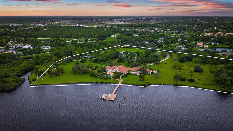 Epic Riverfront | Palm City, Florida.A rare, once-in-a-generation opportunity to own a true slice of Old Florida , nearly 18 acres of pristine riverfront property with 832 linear feet of waterfront on the wide waters of the St. Lucie River.From the moment the gates open and you drive up the epic driveway framed by native palms, this property will take your breath away. The main residence spans approximately 9,150 square feet, featuring 7 bedrooms and 7.1 baths, a resort-style pool, and expansive open living spaces designed for grand entertaining and effortless indoor/outdoor living, the ultimate Florida lifestyle.The estate also includes a detached, state-of-the-art gym and a spacious Guest House / Staff Quarters, offering privacy and comfort for family, guests, or full-time