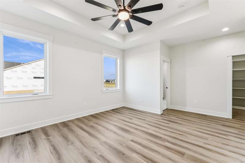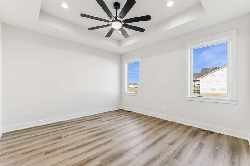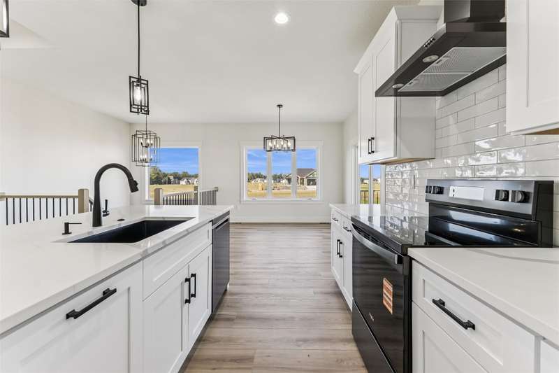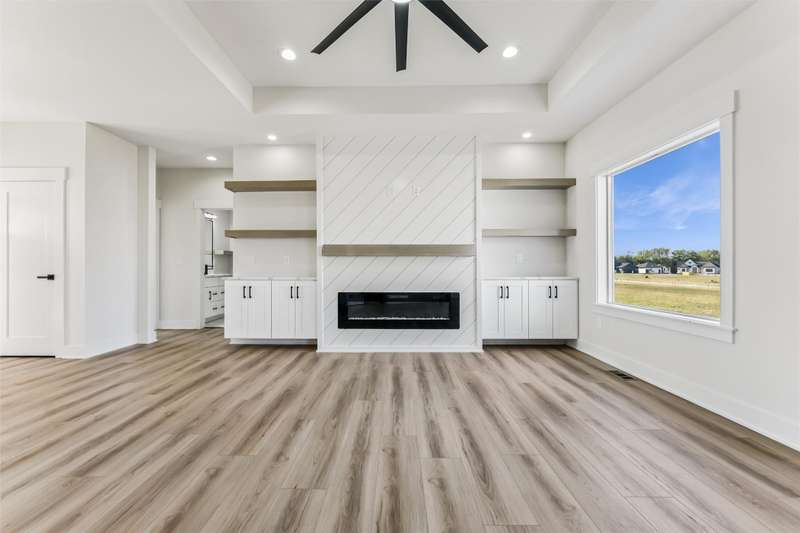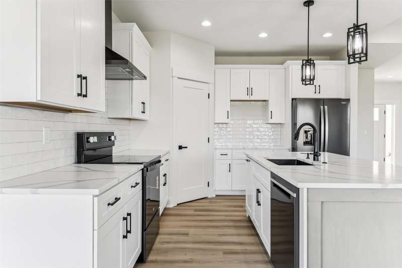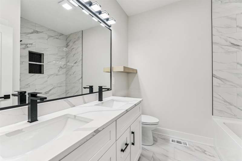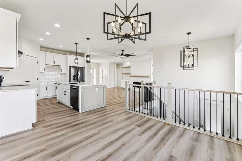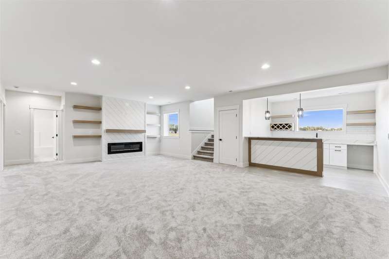 Welcome to this thoughtfully designed new construction home that perfectly blends style, comfort, and functionality! Step into the bright and open living room, where natural light pours in and a modern fireplace adds warmth and charm. The sleek kitchen boasts a large island with seating, a cozy dining nook, and a walk-in corner pantry for all your storage needs. Tucked behind the kitchen, the spacious primary suite offers a relaxing retreat with a beautifully tiled walk-in shower, double vanity, private toilet room, and a large walk-in closet with direct access to the laundry room. Two additional bedrooms and a full bathroom complete the main level. From the dining area, a beautiful staircase leads to the lower level, where daylight windows illuminate the spacious family room featuring a second modern fireplace. Youll also find two more bedrooms, a wet bar perfect for entertaining, and a second laundry roomideal for guests or multigenerational living. This home has it allmodern finishes, a smart layout, and inviting spaces for every stage of life. Dont miss your chance to call it home!