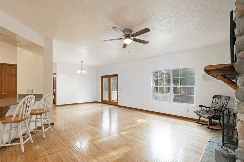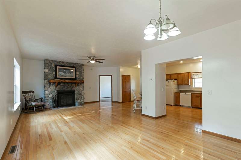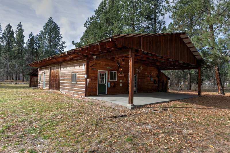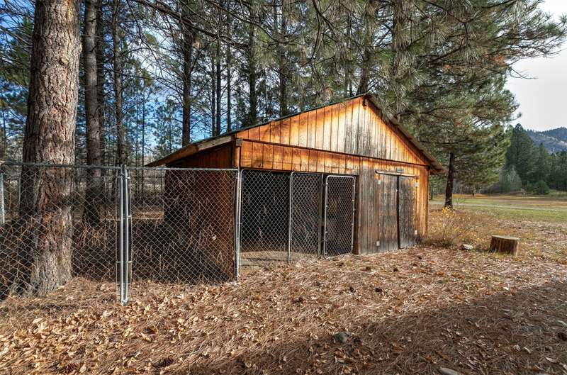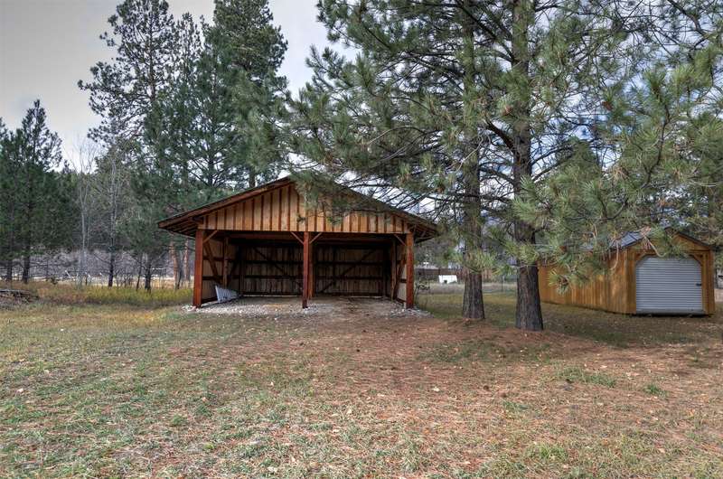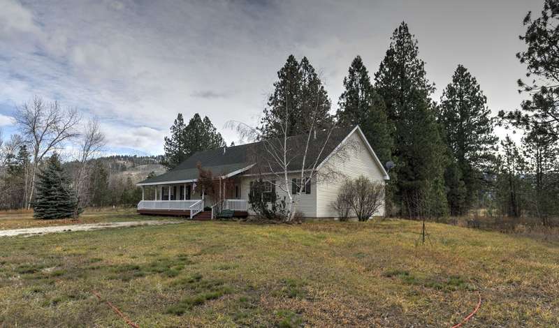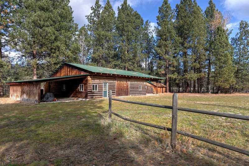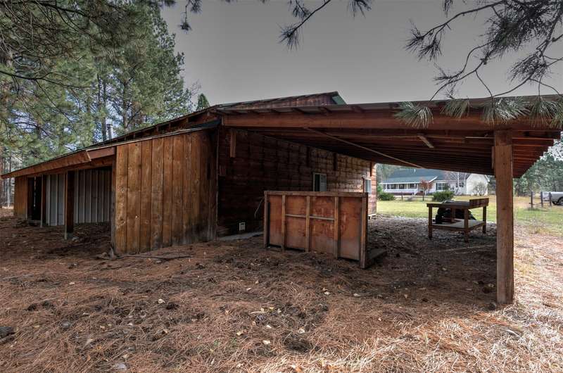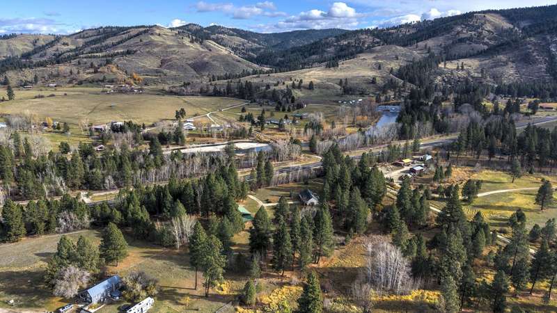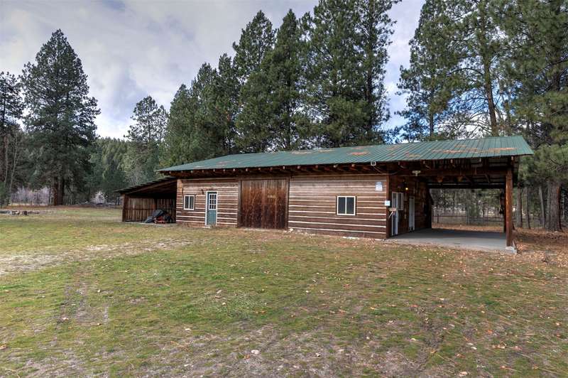 MOVE-IN READY - JUST WAITING FOR YOU TO CALL IT HOME! This lovely ranch-style home offers 3 bedrooms, 2 baths, and 1,808 square feet of comfortable living space on 3.83 wooded acres south of Hamilton in the scenic Lick Creek area. You'll love the spacious floor plan and the striking rock fireplace that serves as a beautiful focal point. Relax on the covered front porch or enjoy sunny mornings and afternoons on the back deck. Hardwood floors grace the main living area, adding warmth and charm. Take in the natural surroundings and stunning views that make this property so special. A pond fed by run-off water adds extra tranquility. And, the Bitterroot River is just a short walk -blue ribbon trout fishing is just minutes away. A 36x44 shop with power includes an 8x44 lean-to, and a covered 16x36 carport pad. There's also a 24x25 storage shed, 19x36 storage shed plus a 20x20 shed with an attached kennel. With easy access off Highway 93 and just minutes from town, this property offers both convenience and tranquility. A true gem!