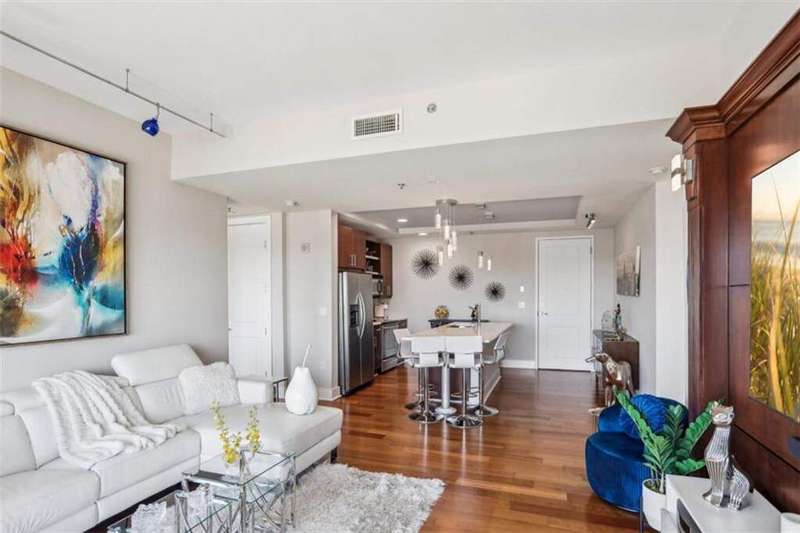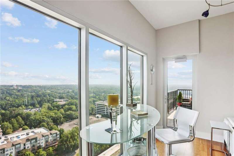 Experience elevated living in this stunning 26th-floor condo, nestled in the prestigious Manhattan high-rise. Offering unparalleled privacy and breathtaking, unobstructed views of Stone Mountain, Kennesaw Mountain, and the vibrant Buckhead community, this end-unit residence is a true gem. Inside, a sun-drenched, open-concept design welcomes you with a seamless flow from the spacious living area to the stylish kitchen. The upgraded culinary space features sleek quartz countertops, a large island with bar seating, custom cabinetry, and a full suite of stainless-steel appliances-perfect for both everyday living and entertaining. A standout custom-built wall unit in the living room adds a touch of sophistication while providing hidden storage for a clutter-free space. The luxurious primary suite offers a serene retreat, complete with a spa-like ensuite bath, dual vanity, frameless glass shower, and a generously sized walk-in closet with custom shelving. A second suite provides a perfect guest room with its own upgraded full bath. Convenience is key with two deeded parking spaces in a gated garage, and the building offers a full range of amenities, including 24-hour concierge service, a fitness center, game room, SkyLounge, tennis courts, and a dog park. Located just moments from Perimeter Mall, Publix, fine dining, and with easy access to major highways and Marta, this condo offers the ultimate in luxury living and convenience.