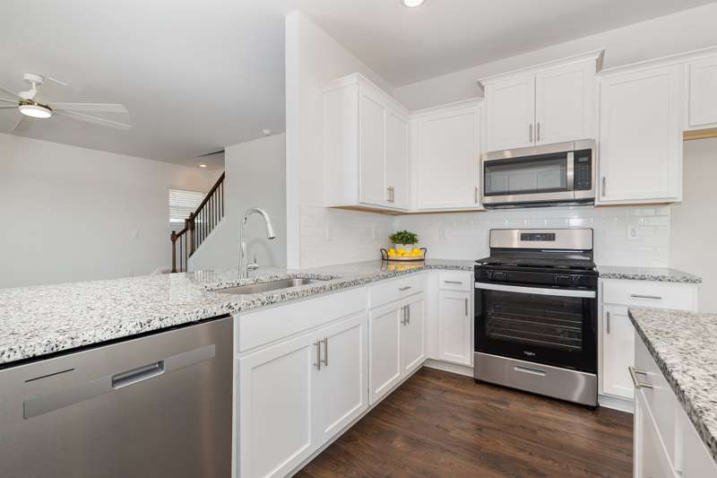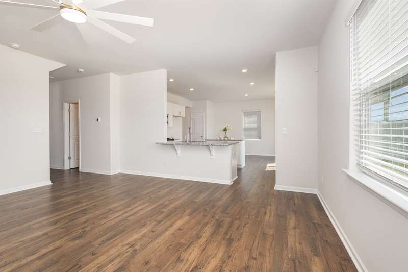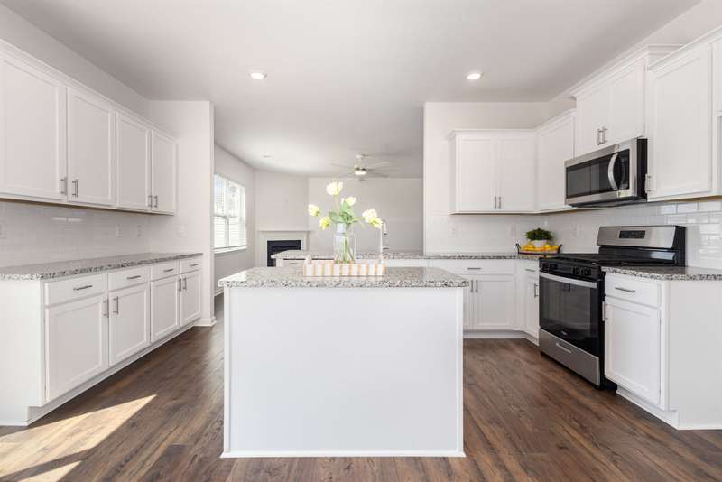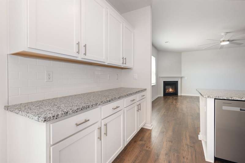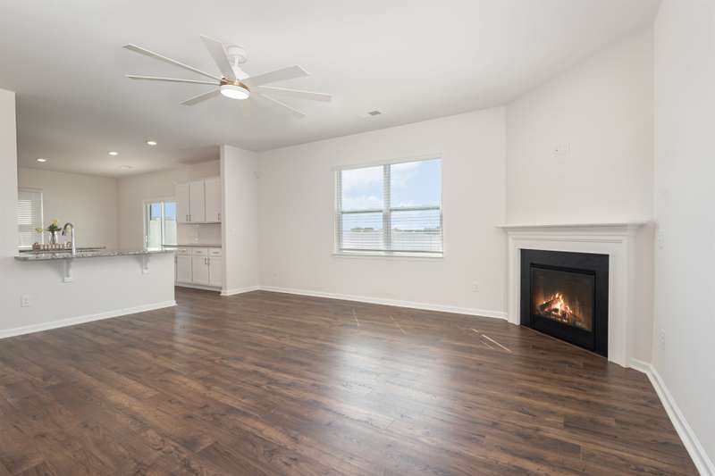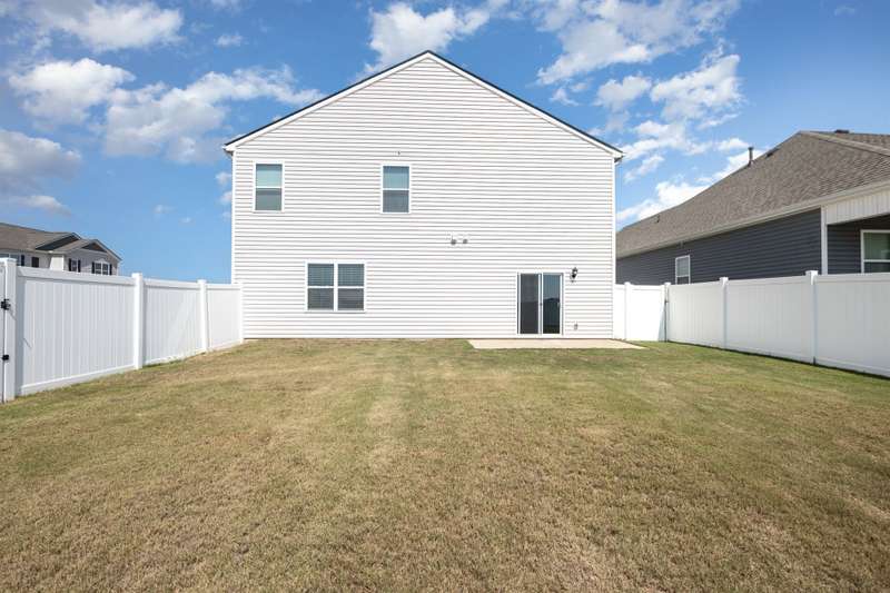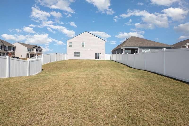 Welcome home to this beautiful Wilmington floor plan/elevation C, featuring a welcoming rocking chair front porch with eye-catching stone accents. Sitting on a HUGE level lot/.33+/- acres, this home offers a fully fenced backyard enclosed by a premium white vinyl fence, a $13,000 investment in privacy and peace of mind the previous owners made in this home. Step inside to a spacious and functional main level with luxury vinyl plank flooring throughout (no carpet!). You'll find an upgraded office/flex room with French doors as you enter the home, a formal dining room, and a cozy living room with a gas log fireplace. The perfect place to gather. At the heart of the home sits the expansive kitchen, offering tons of cabinet storage, a walk-in pantry, and a sunny breakfast area that overlooks the sprawling backyard. A convenient powder room and a walk-in laundry room complete the main level. Upstairs, you'll find a generous bonus loft space, all four bedrooms, and two full bathrooms. The primary suite is oversized and includes a walk-in closet, full bathroom with dual vanities, and an expanded walk-in shower. Each of the additional bedrooms offers large closets, and the upper-level windows provide gorgeous mountain views. Located in a vibrant community with top-notch amenities, including an upgraded community pool, pickleball and bocce ball courts, walking trails, street lighting, and a playground. Zoned for highly rated schools, this home offers a peaceful, rural feel with convenient access to shopping and dining on Wade Hampton Blvd.
