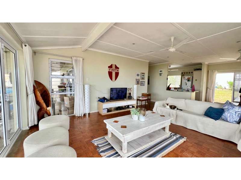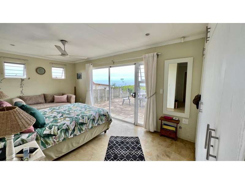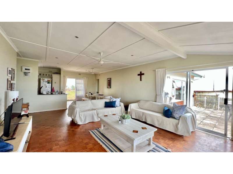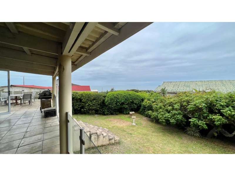 SEASIDE ESCAPE WITH OCEAN VIEWS,, JUST A SHORT STROLL TO THE BEACH Nestled on a corner stand just steps away from the sandy shores is this 4-bedroom home with 3 bathrooms. The bedrooms, thoughtfully positioned, open out to a covered patio where ocean views await, offering a serene retreat to unwind and soak in the coastal breeze. Open plan kitchen, dining room and lounge flows out to the covered patio. The kitchen has granite tops and a separate scullery. Attached to the main house is a one-bedroom flatlet with screeded floors. The open plan kitchen, lounge and dining room looks out to the ocean. This provides a versatile space for friends or extended family or as an AirBnB. The property has an alarm system and is fully walled. Call or WhatsApp me to view! Liz Foster