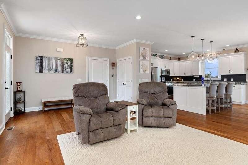 Perfection at it's finest! This flawless custom built 3 bedroom, 2 1/2 bathroom solid brick home is located in the coveted neighborhood of Chatham Square. The location is convenient to all things Harrisonburg & it's tucked back in a small neighborhood on a cul-de-sac so no through traffic. When walking through the door you will be in awe of the spacious open floor plan w/ 9 ft. ceilings, a beautiful gas log fireplace that centers the living room, a formal dining room area, a massive chefs kitchen that offers lots of lovely shaker style white cabinets to provide tons of storage, marvelous granite counter tops & last but not least a huge center island w/ bar stool seating. The main level also has a large laundry closet, a conveniently located 1/2 bathroom for guest & a grand primary bedroom w/ a spa like ensuite bathroom with a stand up tiled floor to ceiling shower, double vanities & a gigantic walk-in closet. Upstairs you will find 2 more bedrooms & a Jack & Jill bathroom. The garage fits 2 cars easily & offers an unfinished space above for storage or finish it as an office, den or whatever you desire. The back patio offers a pergola & custom shades for privacy. The HOA takes care of the yard work, snow removal, etc. Come & Enjoy!