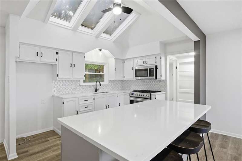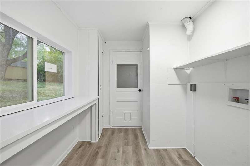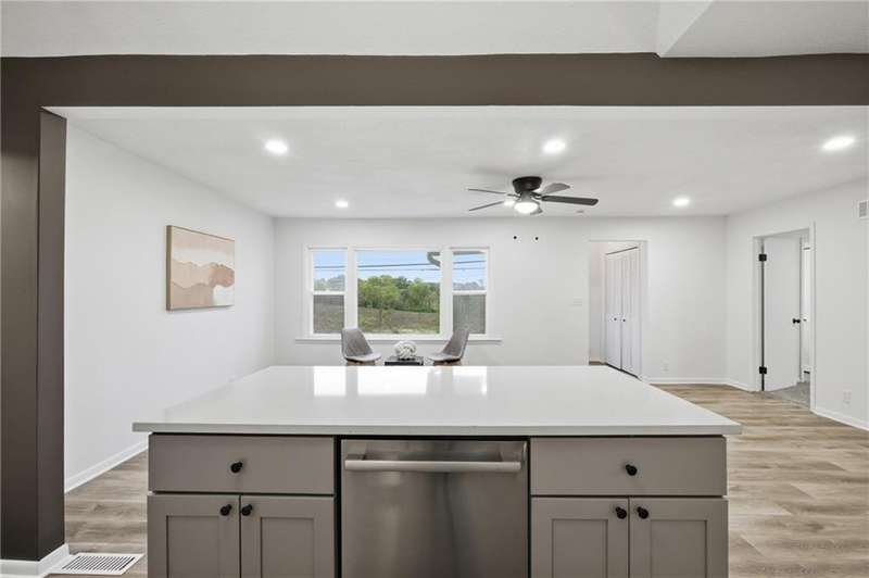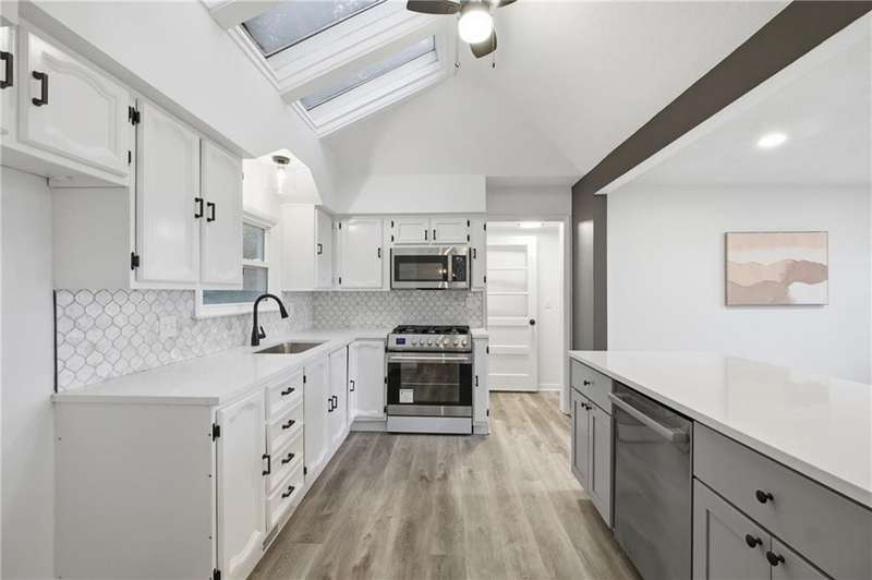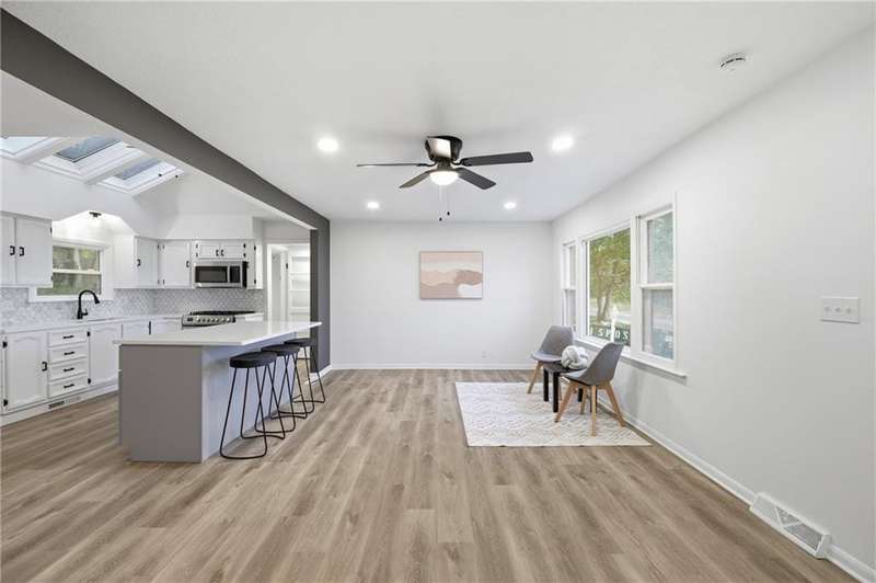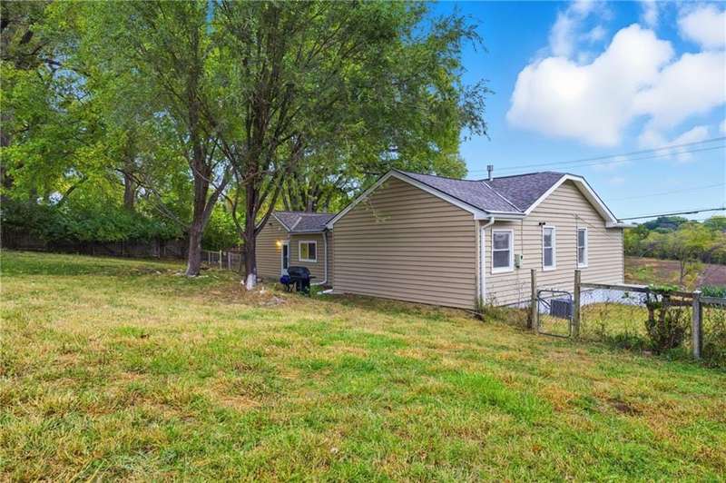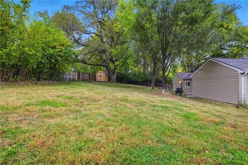 This beautifully renovated ranch in Kansas City combines fresh, modern design with everyday comfort. Each bedroom features its own attached full bathroom, offering convenience and privacy. The heart of the home is the bright, modern kitchen complete with brand-new stainless steel appliances. Skylights fill the space with natural light, and the kitchen sink overlooks the spacious backyard a perfect view while you cook or unwind. The open concept main living space features an oversized picture window with a peaceful view of open sky, grassland, and trees- a rare find in this part of the city. Sitting proudly on a corner lot with nearly half an acre, theres plenty of room to garden, play, or entertain outdoors. Inside, youll appreciate the main-floor laundry room, a primary suite with a walk-in closet, and an attached 1-car garage. The partial basement allows access for utilities, shelter, and extra storage. Located less than five minutes from Arrowhead and Kauffman Stadium, this home offers quick access to some of Kansas Citys best game-day experiences while still providing the feel of a residential neighborhood.