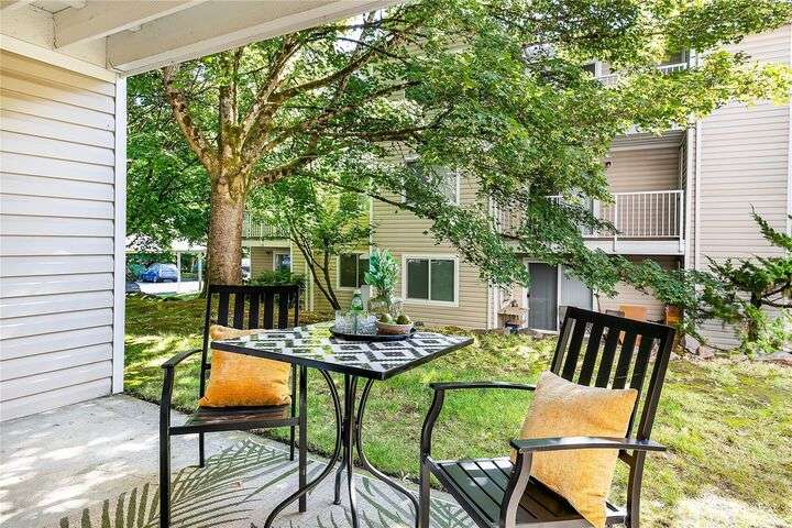 Special Financing Available! Located in the coveted Balaton Condos, this updated ground-floor unit offers both privacy and convenience. The spacious living area features a wood-burning fireplace with electric insert & access to a covered patio with storage. The kitchen showcases a massive quartz peninsula, stainless steel appliances, & abundant cabinetry. Down the hall are two bedrooms and a full guest bath, including a primary suite with a walk-in closet & ensuite bath with walk-in shower. Community amenities include a pool, hot tub, sauna, gym, and clubhouse. Assigned parking included. Tucked at the back of the complex, this home provides peace, privacy, & ample guest parking. Strong HOA & no rental cap.