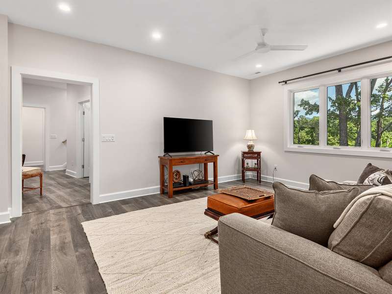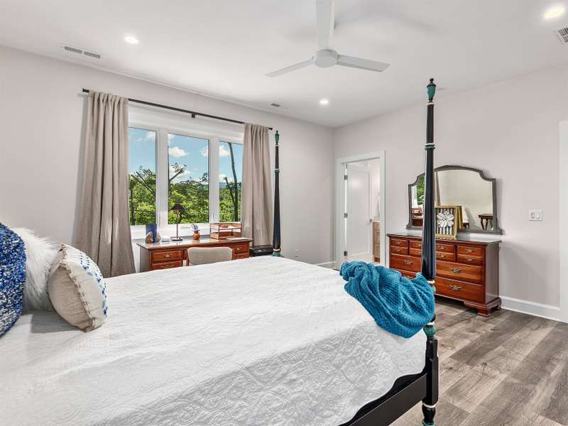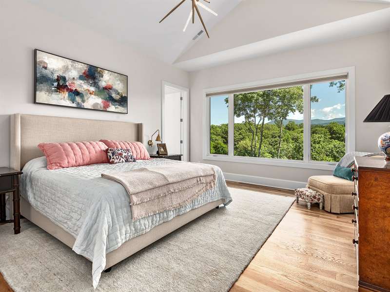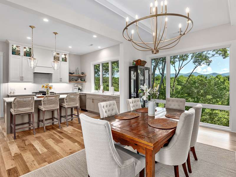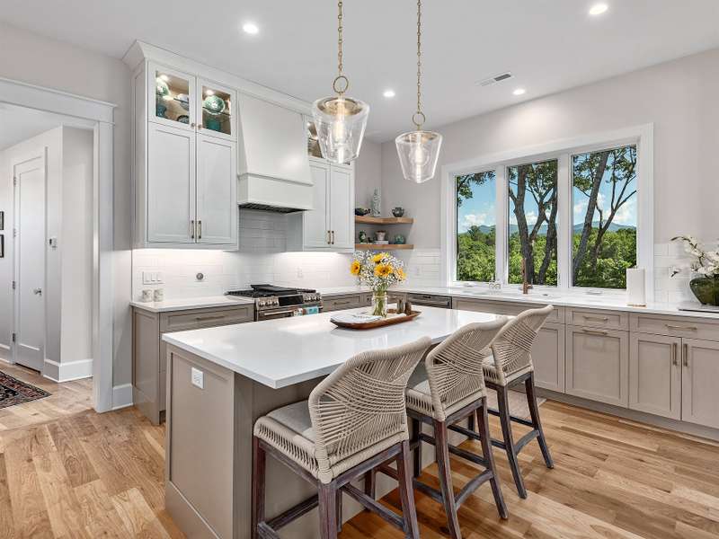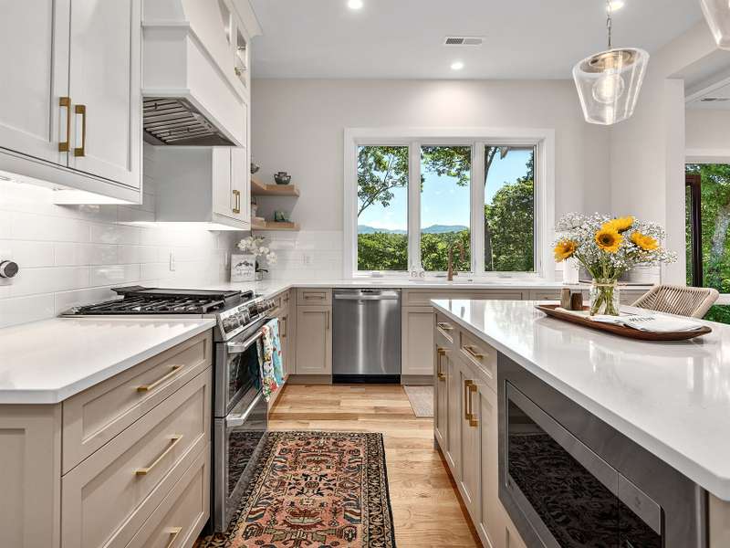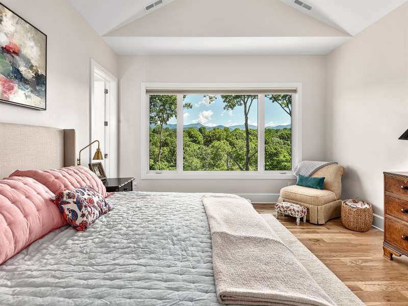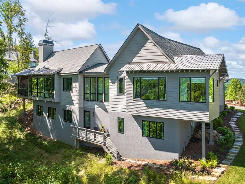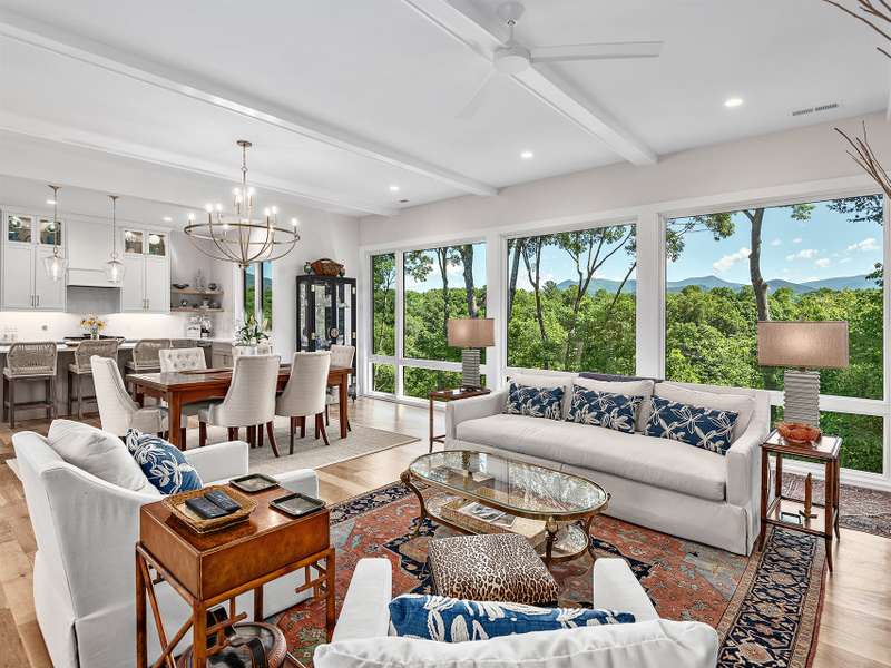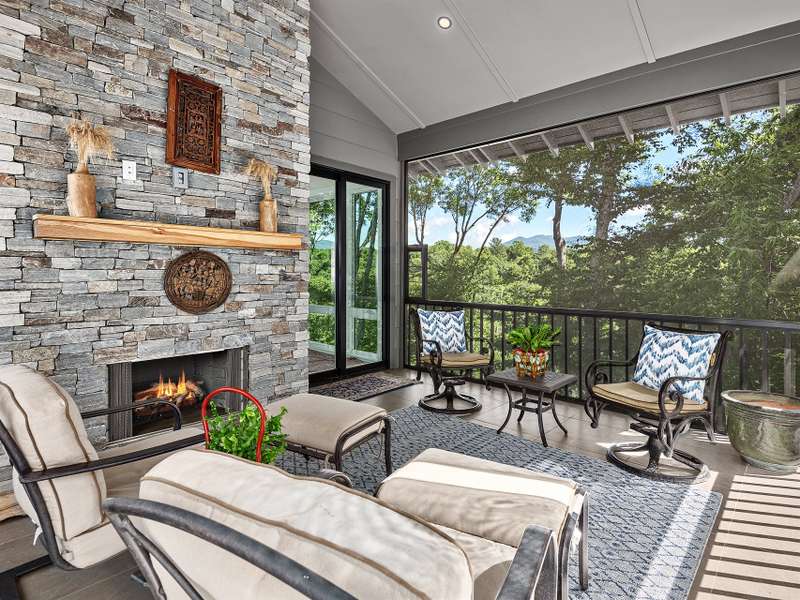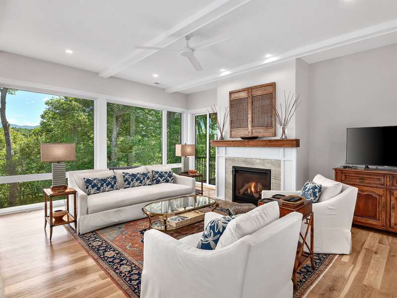 Fall in love where the mountains meet the river! Nestled within the East Asheville gated community of Riverbend Forest, this luxurious home offers gorgeous mountain river views and exquisite craftsmanship. A past Parade of Homes Gold Craftsmanship winner, this residence combines elegance, comfort, and impeccable attention to detail. The sophisticated interior offers a neutral decor that provides a timeless backdrop, enhancing the sense of space and light that you can only find in the mountains. Relax in the spacious screened porch complete with a wood burning fireplace or in the great room with its adjoining gourmet kitchen. The kitchen's custom cabinetry with interior lighting and quartz counters are classic and ageless. A main level primary suite, terrace level family room and guest bedrooms plus the low maintenance surrounding landscape make for an ideal mountain retreat.
