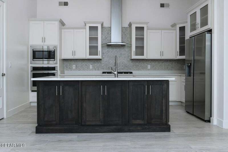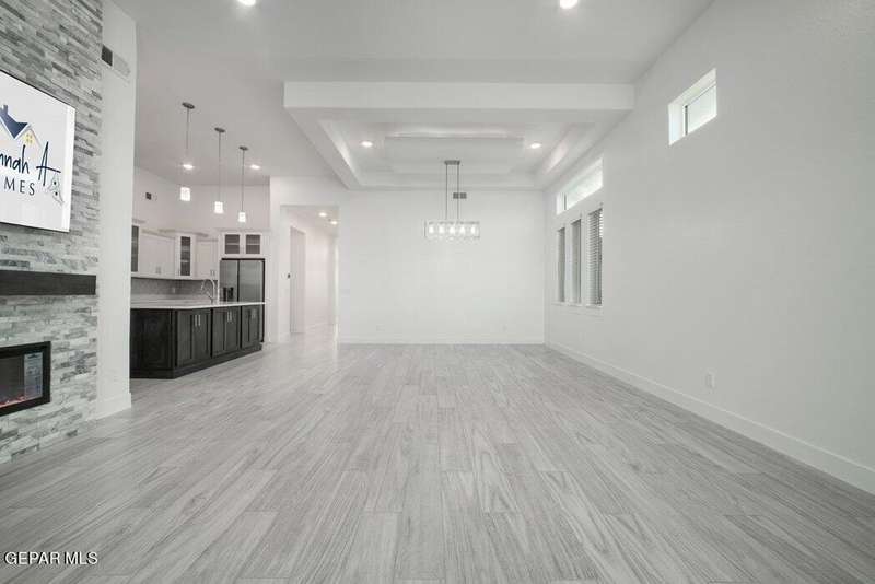 Welcome to this exquisite 4 bedroom, 2 bath home with stunning architectural details and upgrades throughout. As you step inside, you'll be greeted by soaring 12 ft ceilings in the living areas, adorned with elegant designs. The gourmet kitchen features Samsung appliances, custom cabinetry, plenty of storage. Make your way through the bedrooms featuring 10 ft ceilings. The primary bedroom is a true retreat, offering double walk-in closets that provide ample storage space for your wardrobe and belongings. This home also boasts a host of upgraded features, from designer lighting fixtures to Quartz counters throughout ensuring that every corner of this residence exudes both style and quality. With its impeccable design, spacious layout, and luxurious features, this home is truly a gem. MOVE IN READY - Interior colors Warm Whites and Browns