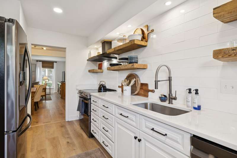 Modern Elegance in River Plantation - Completely reimagined from top to bottom in 2022, this stunning townhome showcases a renovation where no detail has been overlooked. The home makes a striking first impression with new French doors in both the front and back entrance, setting the tone for the thoughtful design and craftsmanship throughout. Inside, the soaring entry welcomes you with a custom railings, added recessed lighting, and curated finishes that balance warmth with modern sophistication. With both a den and living room, there is plenty of space for friends, family and pets. The den features a breathtaking fireplace accent wall, creating a dramatic focal point for gatherings. A fully updated kitchen offers all-new appliances, crisp cabinetry, and rustic open shelving allowing for function and design. Upstairs, serene bedrooms and spa-like bathrooms provide comfort and style, with elegant finishes and carefully chosen fixtures. The primary suite evokes hotel-level luxury with its refined details and abundant natural light. Step outside into the private courtyard, a retreat designed for both entertaining and unwinding. A charming fountain, string lighting, and lush greenery create an inviting atmosphere, while ample guest parking and convenient carport access enhance daily living. Every element has been thoughtfully considered, and lovingly maintained, offering a turnkey lifestyle in one of Nashvilles most established communities!