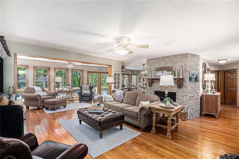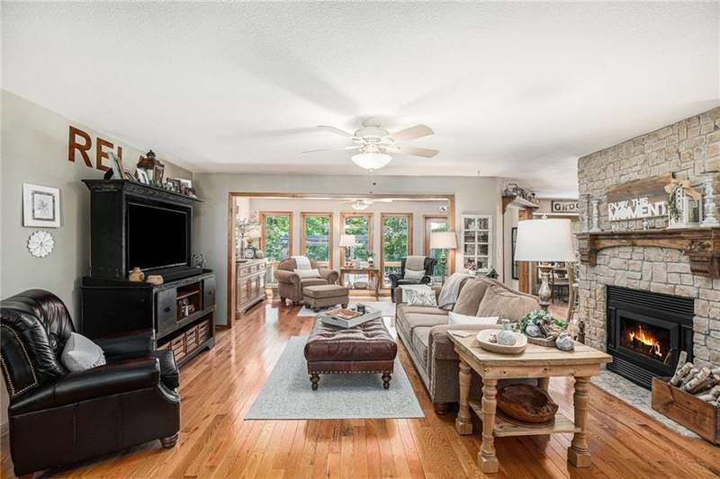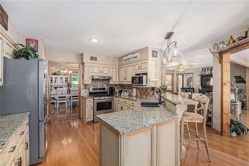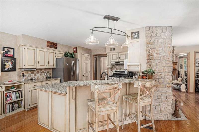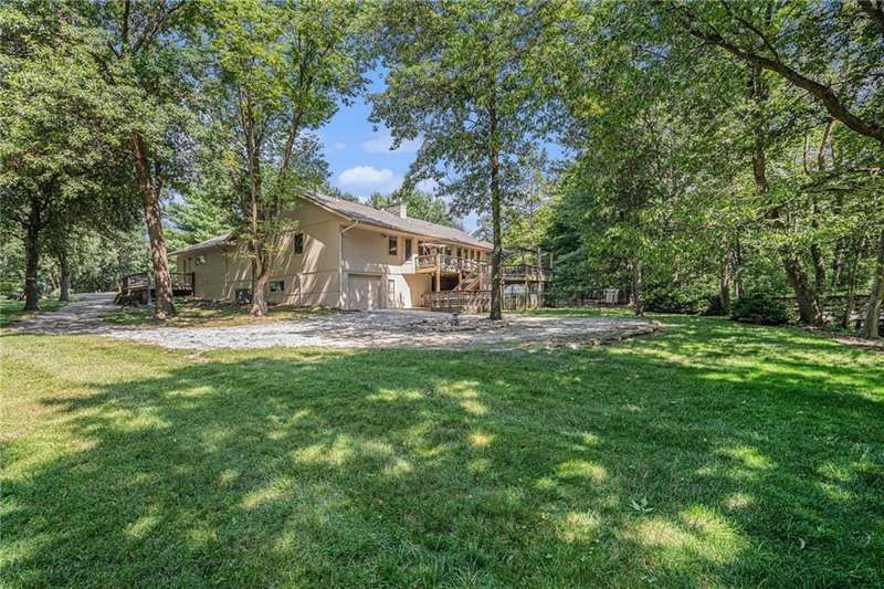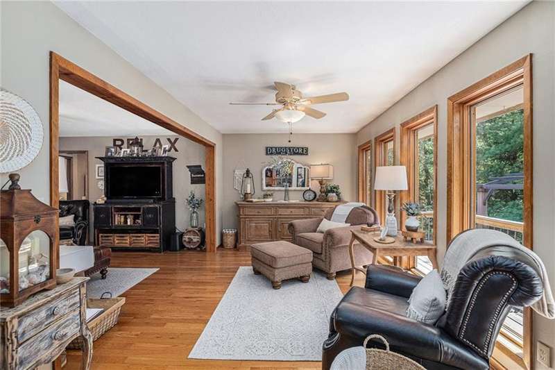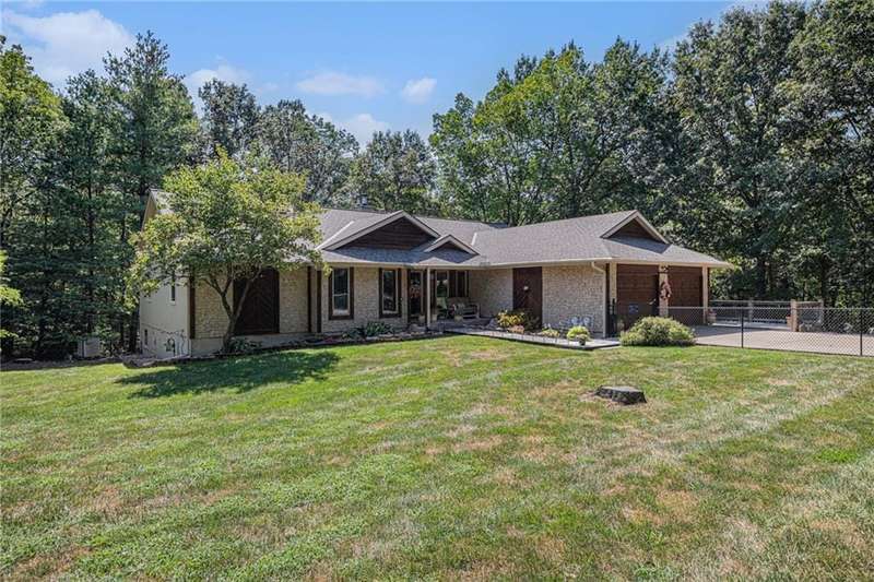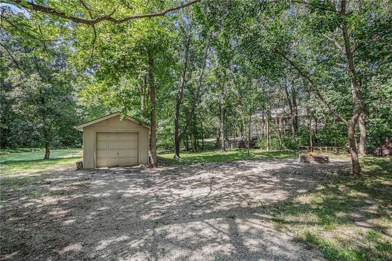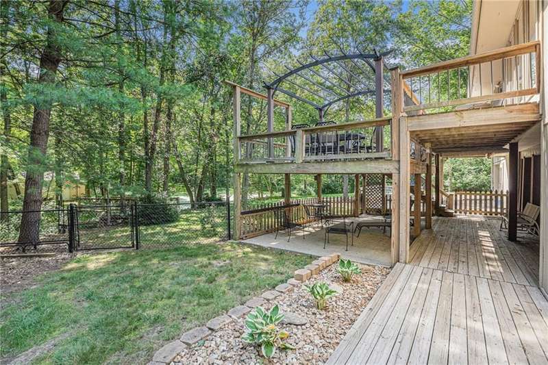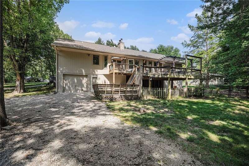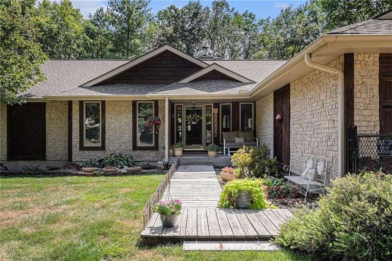 Walking up to this home, youll immediately admire the wood and stone veneer exterior, the inviting wooden walkway, and beautifully landscaped garden beds. The fenced front yard offers both curb appeal and pet-friendly accessibility.Inside, wide open spaces and vaulted ceilings greet you. The living room flows seamlessly into the spacious family room with a wood burning fireplace, opening to a sunroom filled with natural light. The breakfast nook sits just off the kitchen, which features custom cabinetry, stainless steel appliances, and a bar overlooking the space. Nearby, the laundry room offers ample storage.The primary suite is a retreat with vaulted ceilings, a sliding barn door to the spa-like bathroom, freestanding tub, walk-in shower, dual sinks, and walk-in closet. Two additional bedrooms and a full bath complete the main floor, along with a two-car garage.The partially finished basement includes a bathroom, industrial sink, storage space, a third garage area for toys or equipment, and walkout access to the backyard.A multi-level deck adds charm and function, with an upper pergola-covered area for dining, a shaded lower patio, built-in benches, and a staircase connecting the levels. The property also features a small shed with a garage door, a firepit, and a wooden bridge leading to a large workshop with concrete frontageperfect for projects or extra storage.Move-in ready for your family or full of potential to become your forever homea perfect blend of charm, character, and functionality.