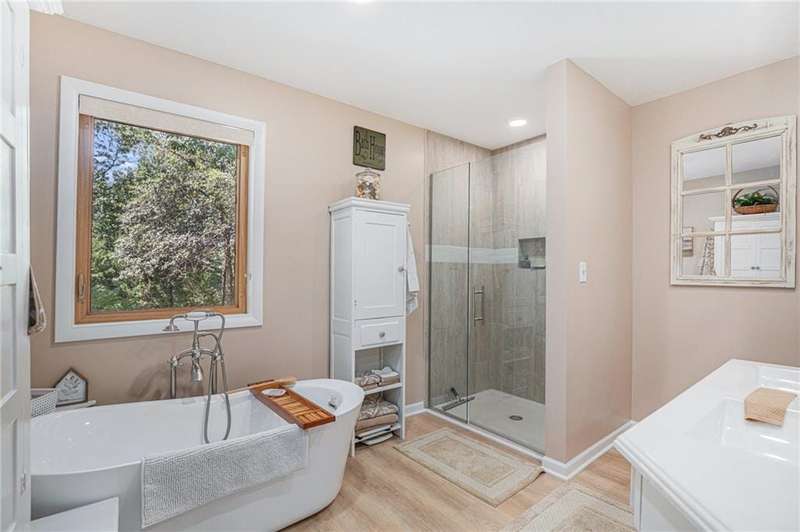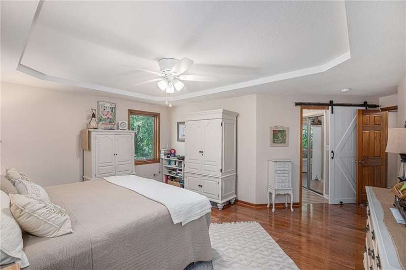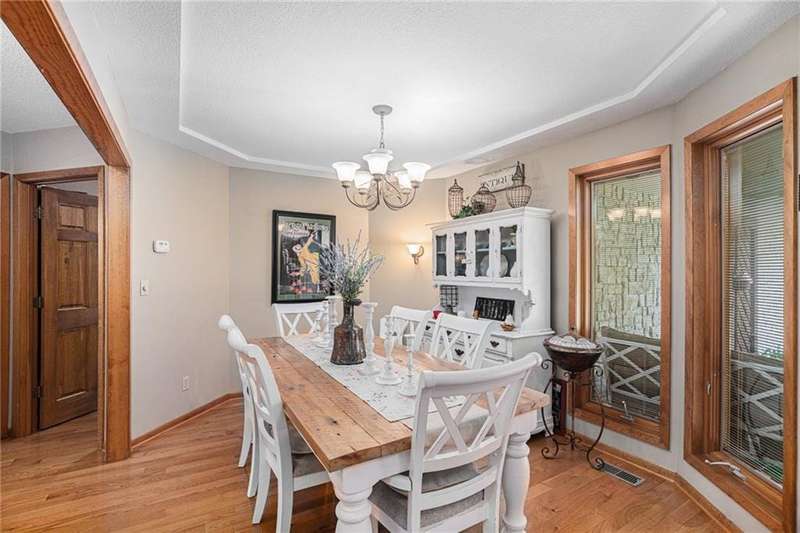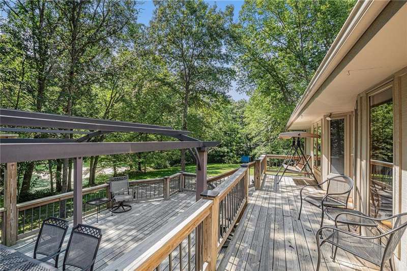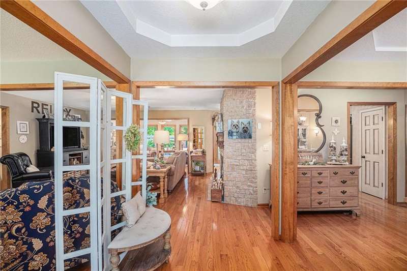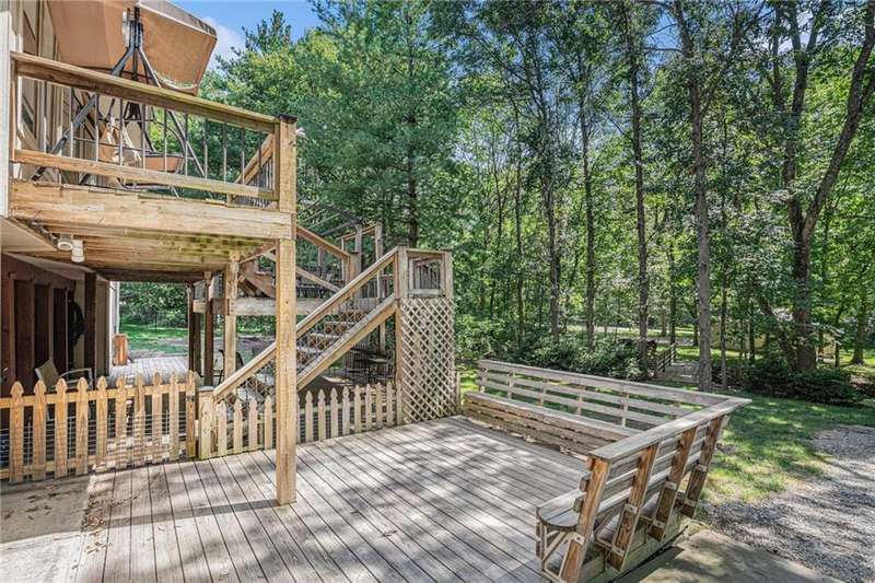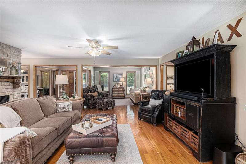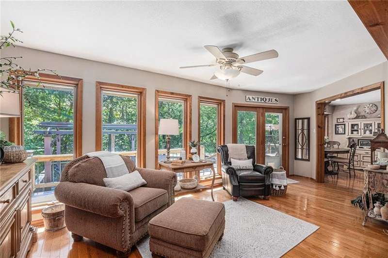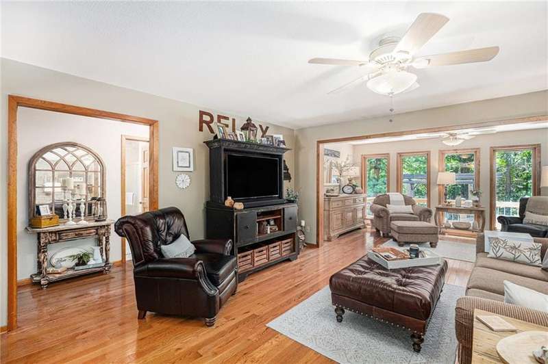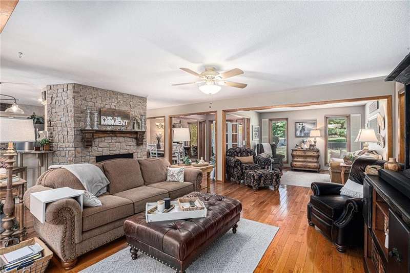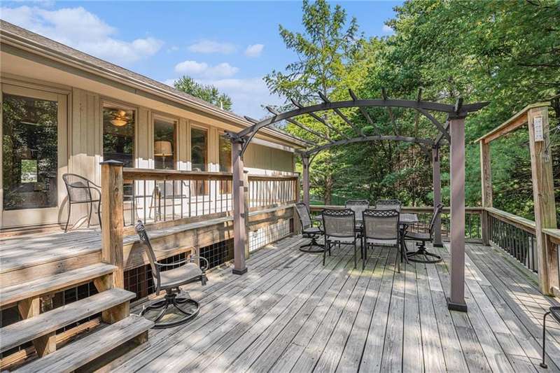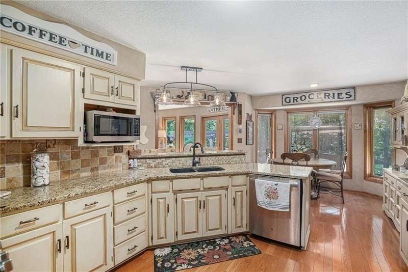 Walking up to this home, youll immediately admire the wood and stone veneer exterior, the inviting wooden walkway, and beautifully landscaped garden beds. The fenced front yard offers both curb appeal and pet-friendly accessibility.Inside, wide open spaces and vaulted ceilings greet you. The living room flows seamlessly into the spacious family room with a wood burning fireplace, opening to a sunroom filled with natural light. The breakfast nook sits just off the kitchen, which features custom cabinetry, stainless steel appliances, and a bar overlooking the space. Nearby, the laundry room offers ample storage.The primary suite is a retreat with vaulted ceilings, a sliding barn door to the spa-like bathroom, freestanding tub, walk-in shower, dual sinks, and walk-in closet. Two additional bedrooms and a full bath complete the main floor, along with a two-car garage.The partially finished basement includes a bathroom, industrial sink, storage space, a third garage area for toys or equipment, and walkout access to the backyard.A multi-level deck adds charm and function, with an upper pergola-covered area for dining, a shaded lower patio, built-in benches, and a staircase connecting the levels. The property also features a small shed with a garage door, a firepit, and a wooden bridge leading to a large workshop with concrete frontageperfect for projects or extra storage.Move-in ready for your family or full of potential to become your forever homea perfect blend of charm, character, and functionality.