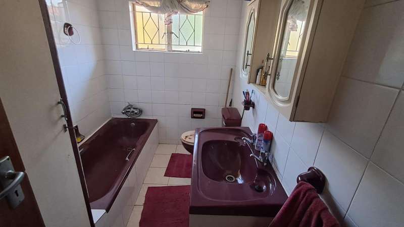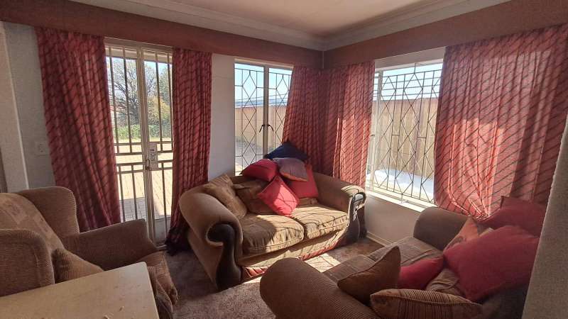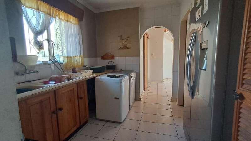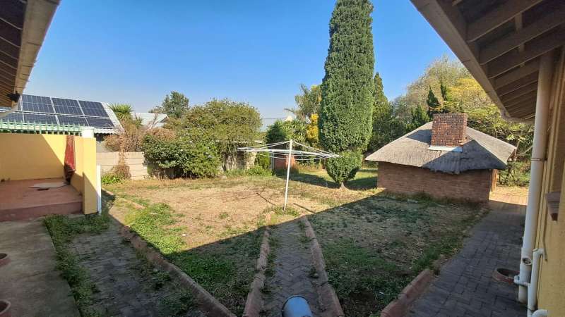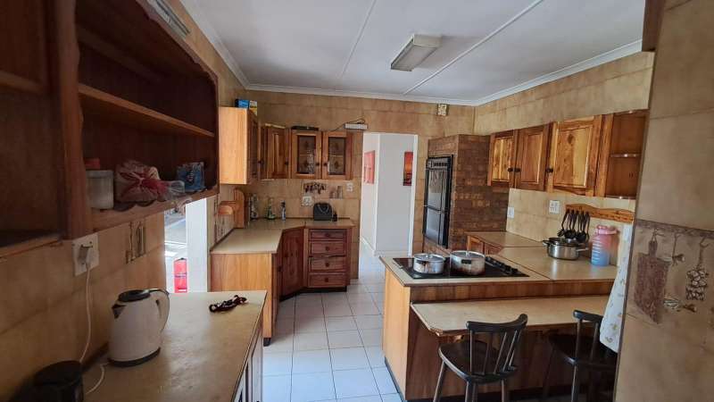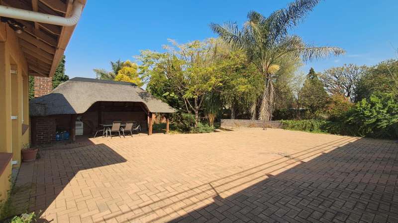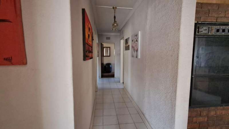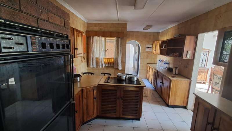 This property is spacious and on a large stand, size 1347 sqm, plenty of space for developing. Estimated floor size 352 sqm. The lounge has a fireplace and the dining room is spacious. Separate TV room. The kitchen has eye level oven and hob. Wooden cupboards and a breakfast counter. Separate scullery and wash up area. The house comprises of 4 bedrooms with built in cupboards. Three bathrooms and shower cubicles. There is a small sitting room or study area that has a door that opens to the outside large paved area with a lapa. There is a staff room and outside toilet. Double garage and a double carport. Property has a wall and a fence. Contact Anastasia for a viewing appointment.