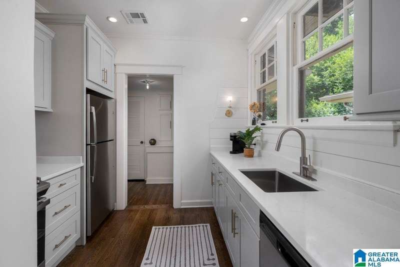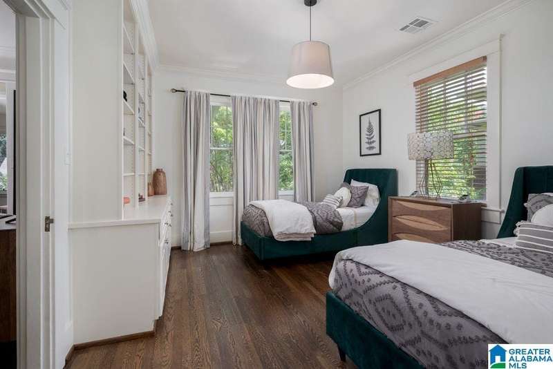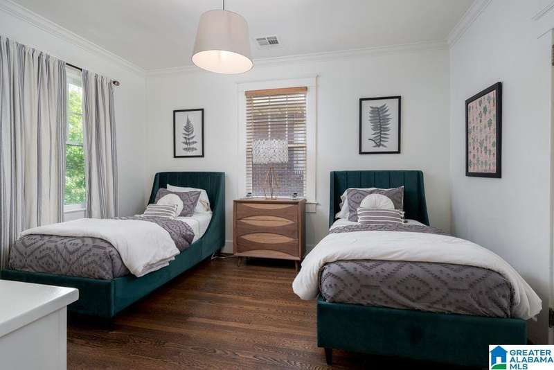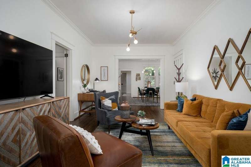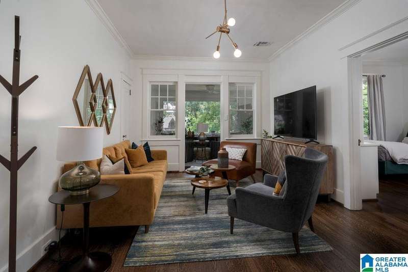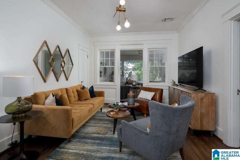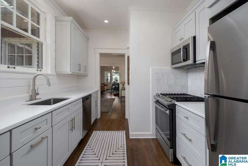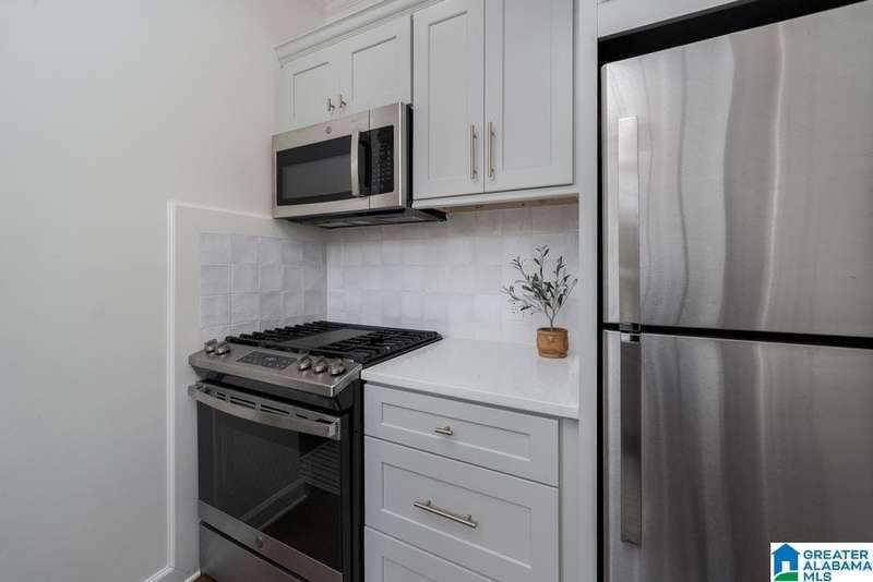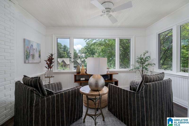 This absolutely fantastic home is located in the heart of historic Forest Park! This 1920's condominium has been updated without losing any charm. Spacious living room opens to an even larger formal dining room. Efficient kitchen design includes all new cabinets topped with quartz countertops, new (2021) GE appliances (gas range), molded tile backsplash and under mount sink. Sunroom with pine floors. Original hardwood floors refinished, fresh paint and new light fixtures throughout. HVAC replaced 2023 Primary bedroom includes 3 closets and dressing room or use as a home office. Guest bedroom is filled with natural light and built in bookcases with extra storage. Classic black and white tiled bath with tile floor in a herringbone pattern. Laundry includes new (2021) GE front load washer and dryer with folding table. screened staircase to rear parking and patio. Loads of closet space. Move in condition! Just a short stroll to Forest Park village and Avondale, minutes to UAB / downtown.