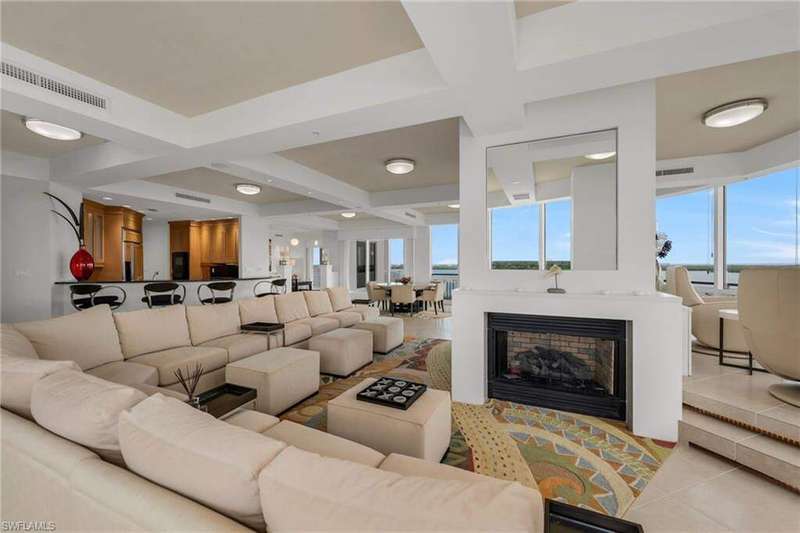 Azure is one of Bonita Bay's finest luxury high-rises situated on a premier site next to Estero Bay Park. This corner residence with 3 ensuite bathrooms, with 2 built-out walk in closets, plus den and has a beautifully appointed private elevator entry foyer. 270-degree floor to ceiling windows provide views of sunrise and sunsets over the gulf, bay, lake, and golf courses. This spacious floor plan with 10' ceilings and chef's kitchen with gas stove top, makes entertaining friends and family a pleasure. Superb finishes typical of this price range were selected and coordinated by the owner. PRIVATE ENCLOSED TWO CAR GARAGE. Azure offers updated communal areas, live-in manager, 2 guest suites, fitness & massage room, club & card room. saltwater pool, spa, two fire pits, covered screened social area with outside grilling. Bonita Bay has 5 golf courses, 18 court tennis, 18,000 sf. fitness, 8,000 sf. Lifestyle spa & salon, full-service marina, Gulf front beach park, 5 restaurants, 10 pickle ball courts, crochet, bocce ball, canoeing, Life Enrichment Center & 3 parks.