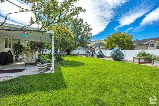 Discover this beautifully updated rambler on a spacious corner lot, ideally located in the charming Foothills Neighborhood close to great schools, shopping/dining, trails, parks, and entertainment. With a fully fenced yard, covered back patio, playhouse, sandbox, mature trees, fruit trees, and impeccable landscaping, the outdoor space is truly an oasis. Step inside to find a bright and inviting interior with vaulted ceilings in the living and dining rooms, fresh new carpet throughout, and tastefully updated bathrooms. The kitchen features white shaker-style cabinetry, stainless steel appliances, and thoughtful finishes that make it both stylish and functional. The spacious primary suite includes an ensuite bath and walk-in closet, while two additional bedrooms upstairs offer a unique layout with French doors on the shared wall-ideal for a connected playroom setup, shared space, or easily converted into traditional bedrooms. The fully finished basement expands your living options with a large family room that flows into a built-in wet bar, perfect for entertaining. French doors open to a versatile flex room that works beautifully as a home office, gym, or creative space as well as an additional bedroom and bath, making the lower level complete. Finally, two storage sheds and RV parking with 220V power on the side of the home are the perfect setup for both storage and prep for weekend fun making this home an incredible opportunity you won't want to miss.
