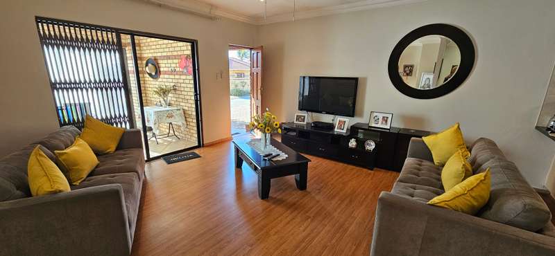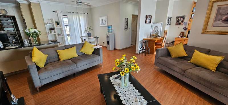 This unit is situated within a secure complex for the over 50's - It offers a lovely and spacious open plan lounge, dining area and kitchen. There is also an enclosed sun patio with sliding doors leading to the well kept garden. There are 2 spacious bedrooms with built in cupboards and 2 bathrooms. Complete with a double automated garage, pre-paid electricity and extra parking in the driveway and garden. A well secured unit with alarm system, security gates and electric fencing around the complex. Situated close to the Lemon Tree shopping centre, New Market Mall, Alberton CBD and so much more...